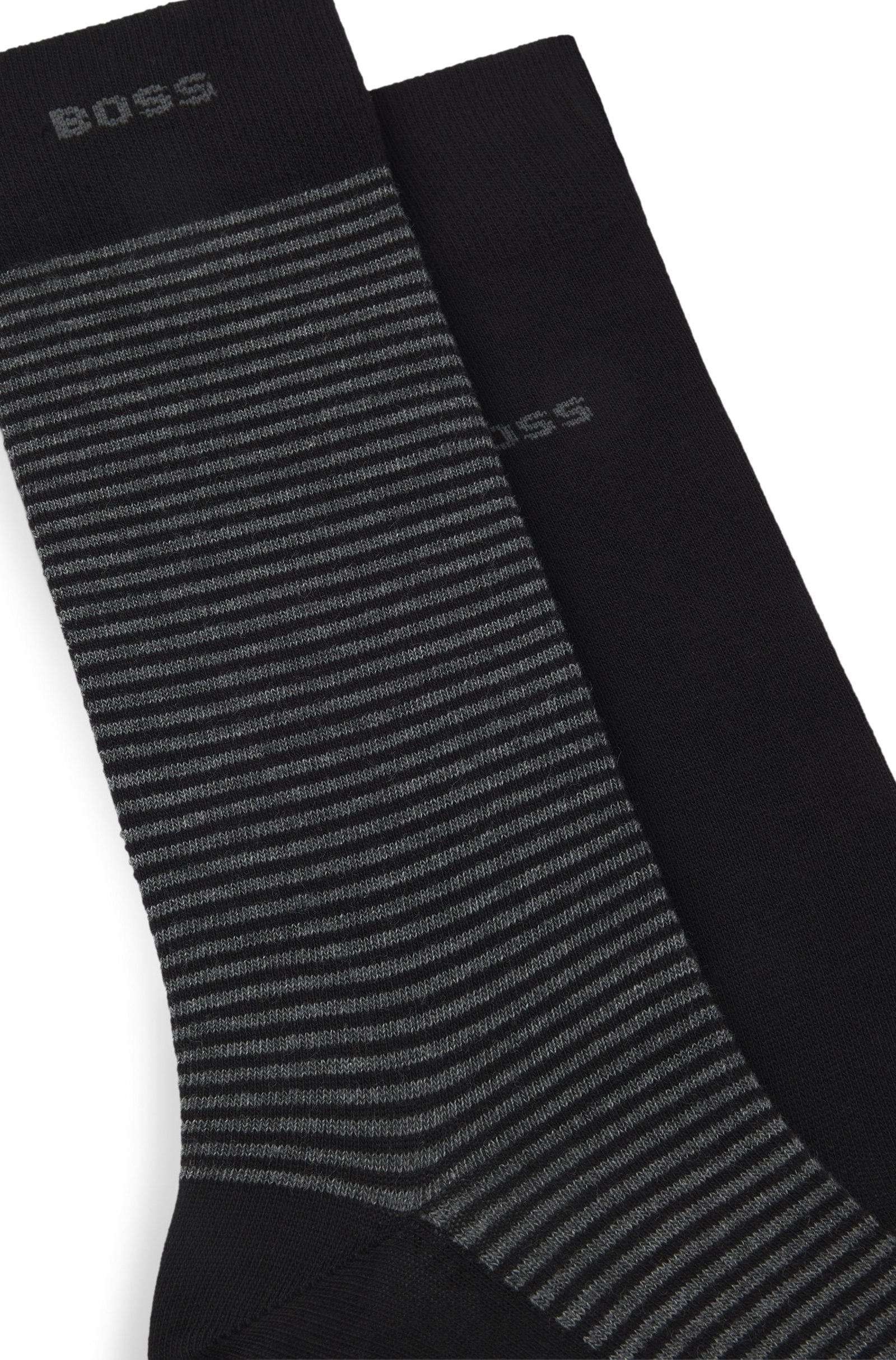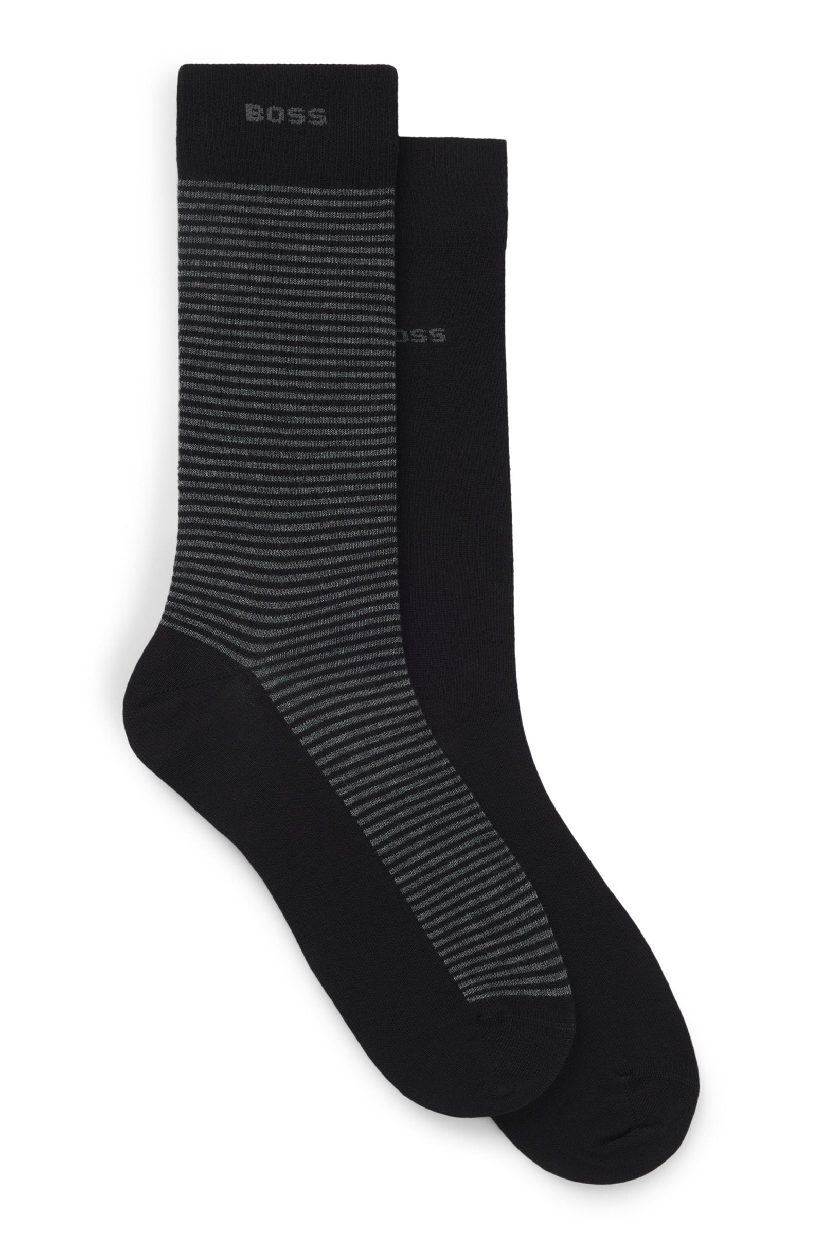 With striped and plain designs, this duo of regular-length BOSS Menswear socks is ideal for everyday wear. Logo details.