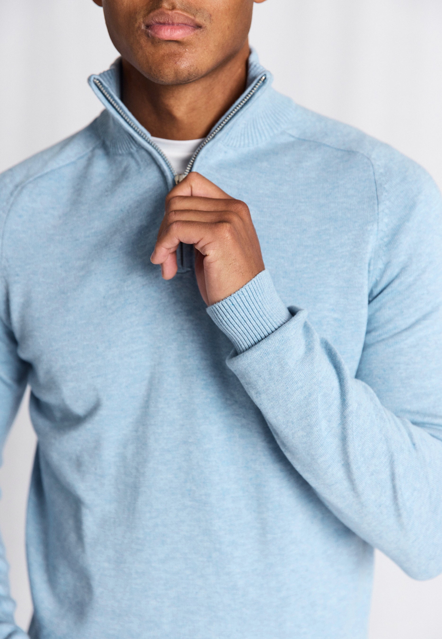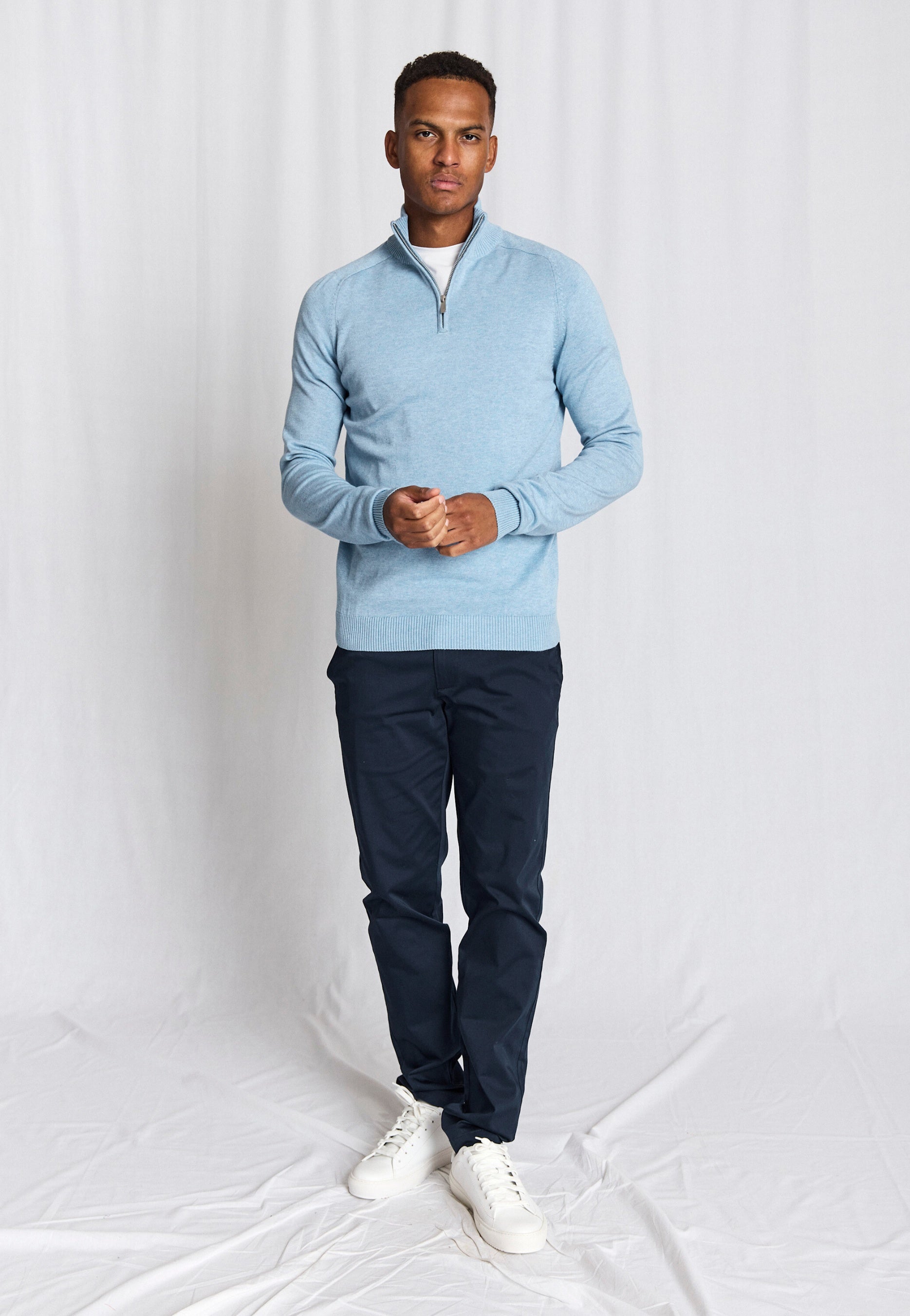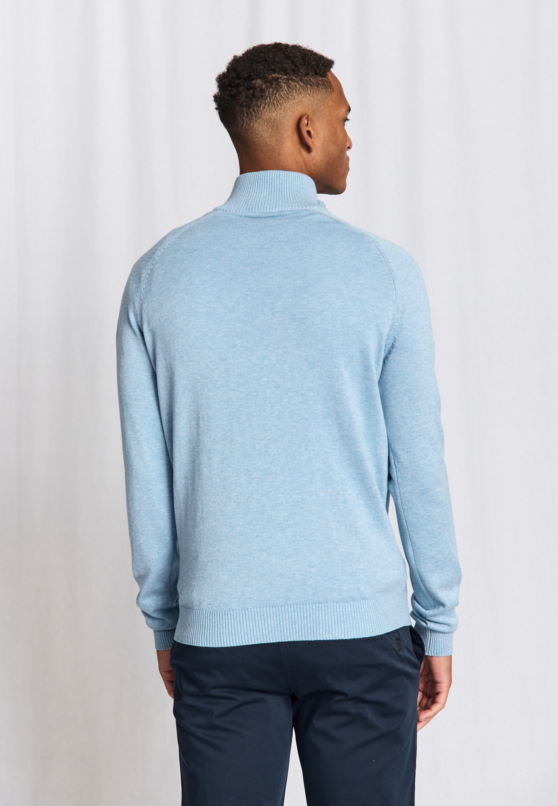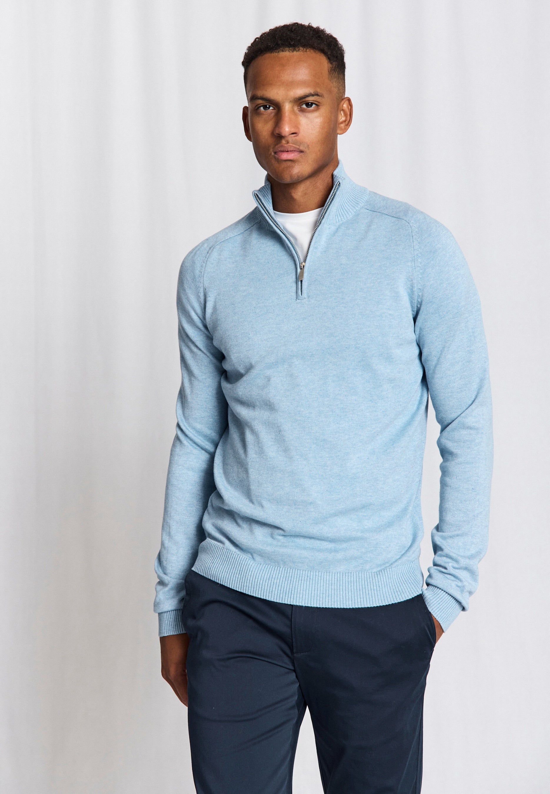Lightweight half-zip sweater with stand-up collar, knitted in a soft cotton and tencel blend. Ribbed details at the collar, sleeves and bottom give a sophisticated look, and the sweater has a timeless fit that makes it easy to style for both everyday and more relaxed looks.