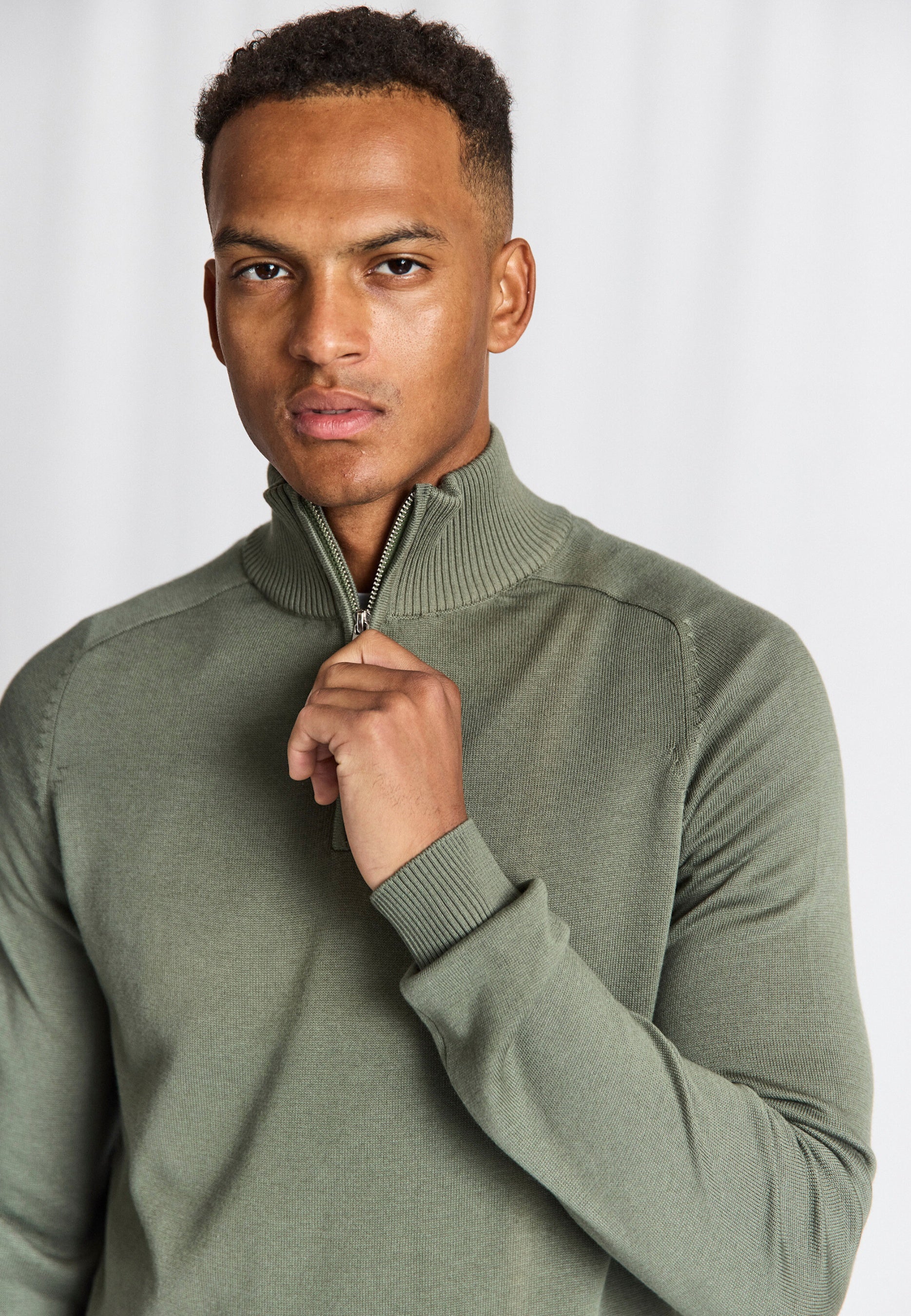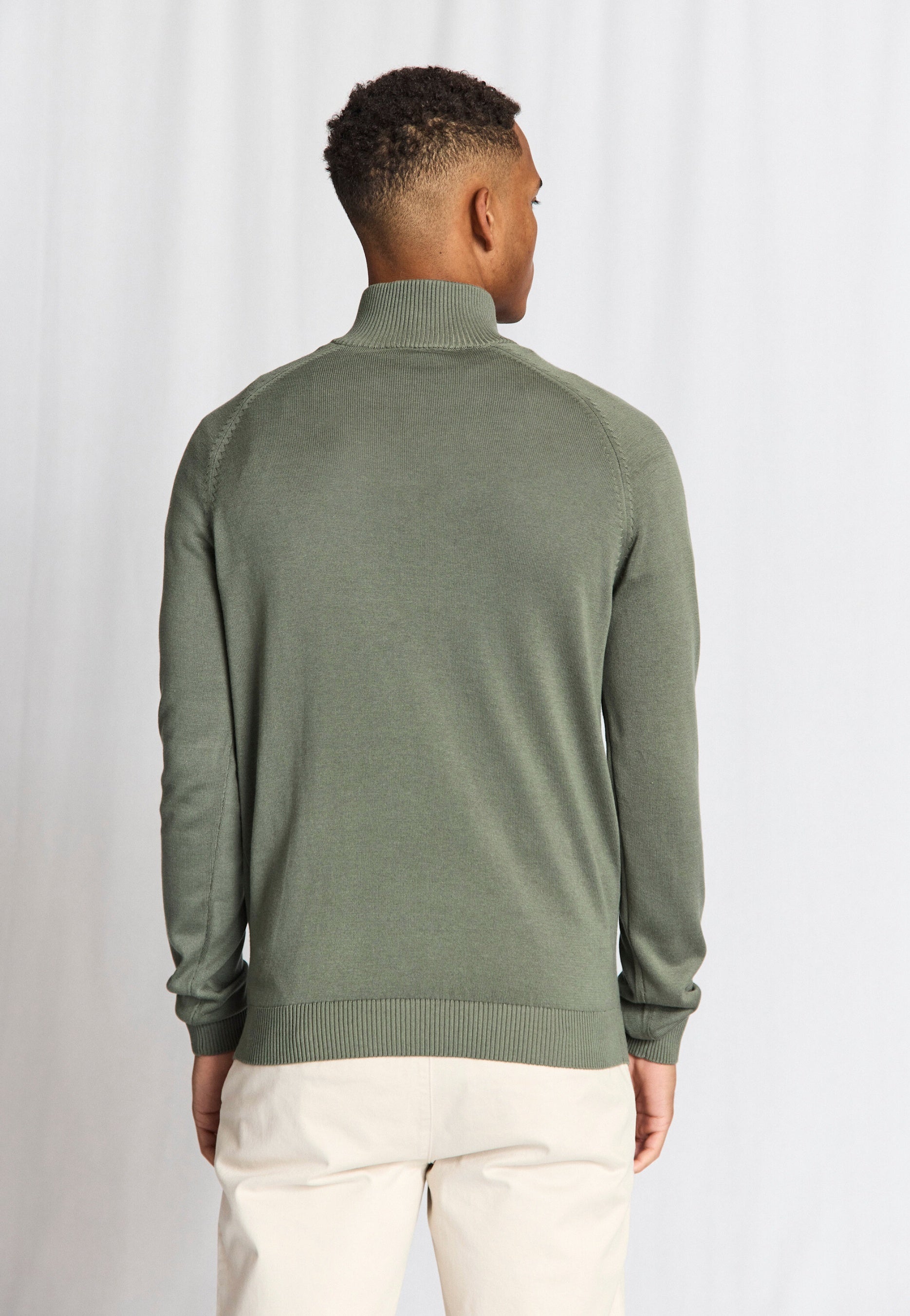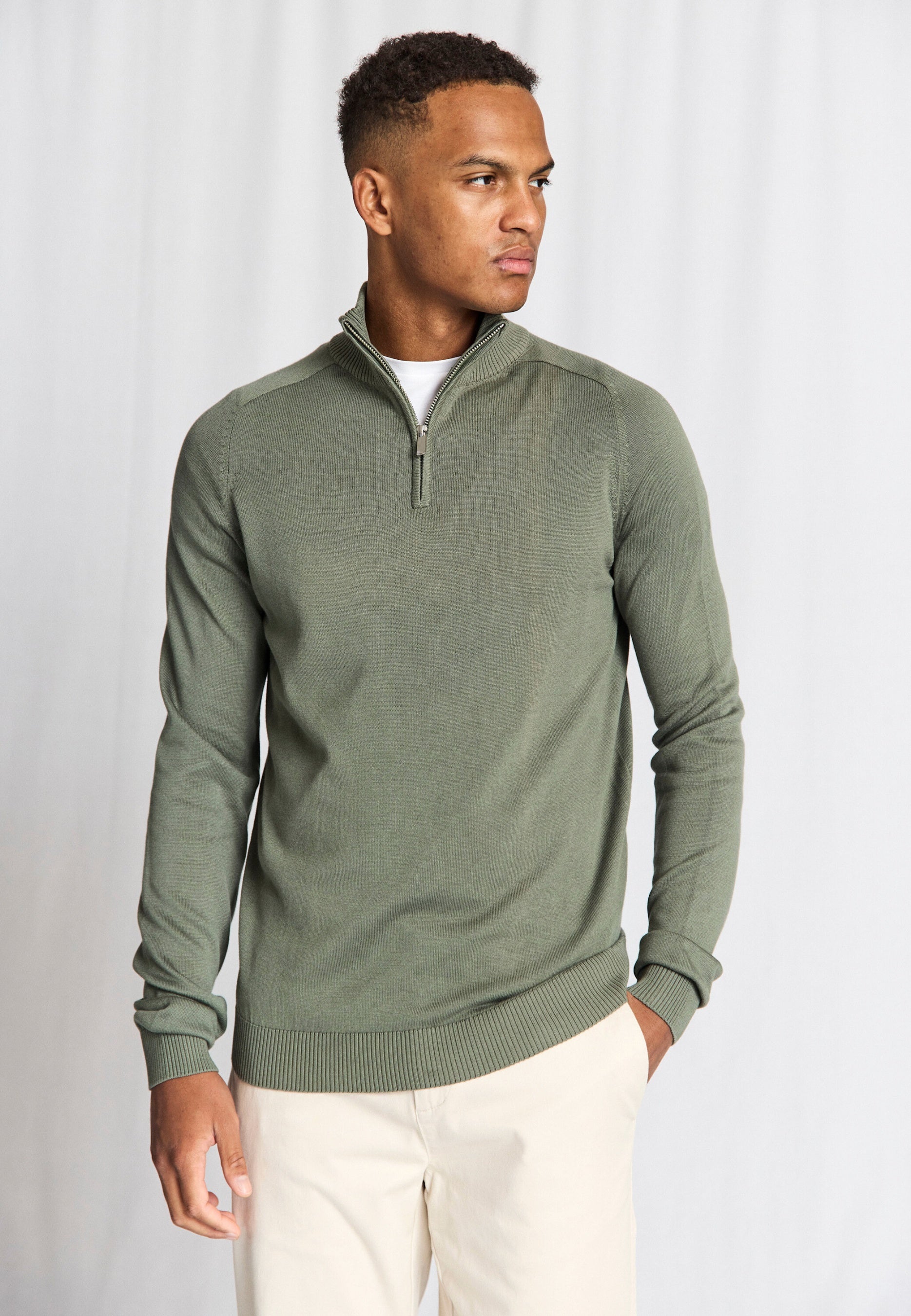 Lightweight half-zip sweater with stand-up collar, knitted in a soft cotton and tencel blend. Ribbed details at the collar, sleeves and bottom give a sophisticated look, and the sweater has a timeless fit that makes it easy to style for both everyday and more relaxed looks.