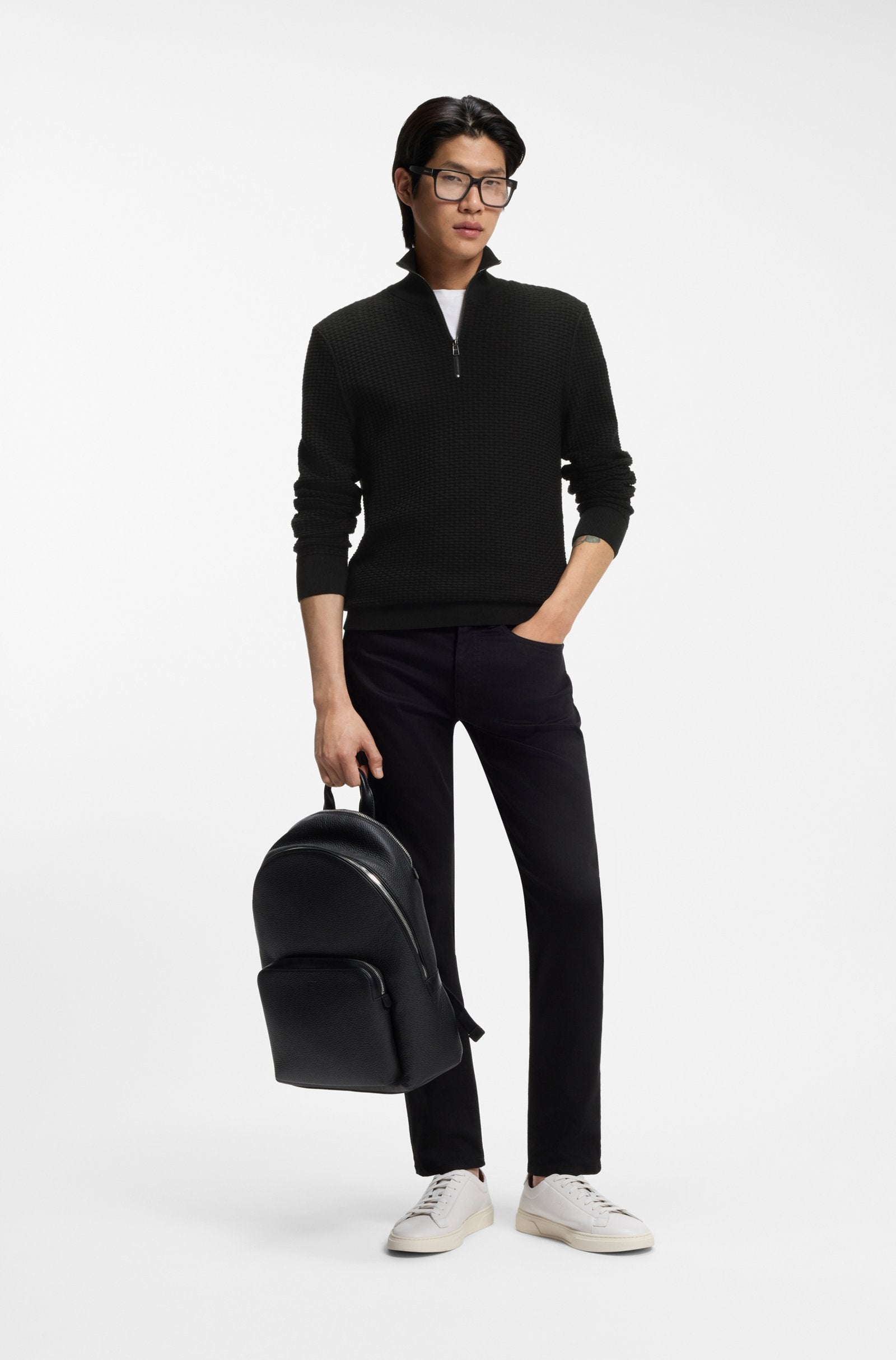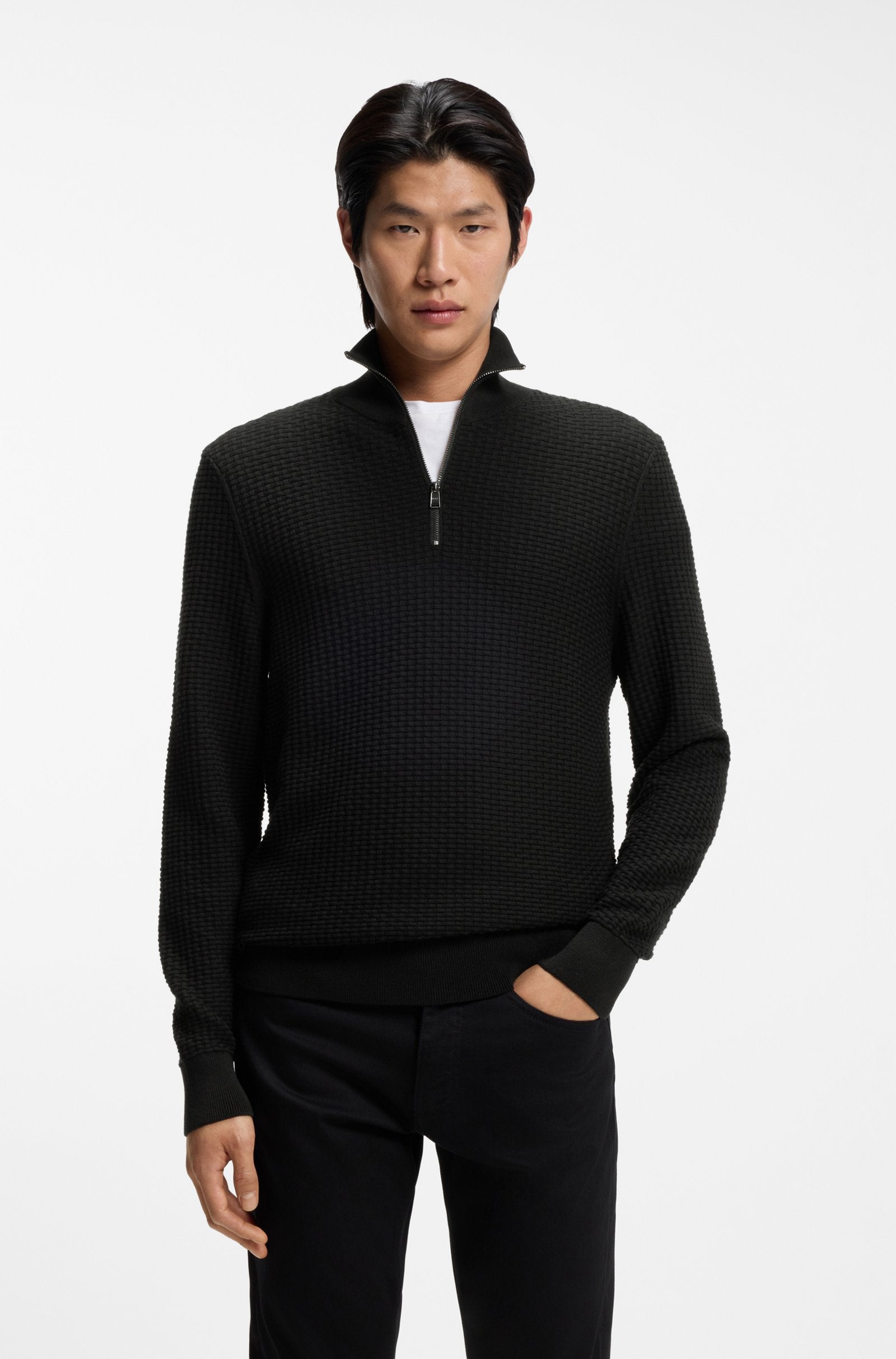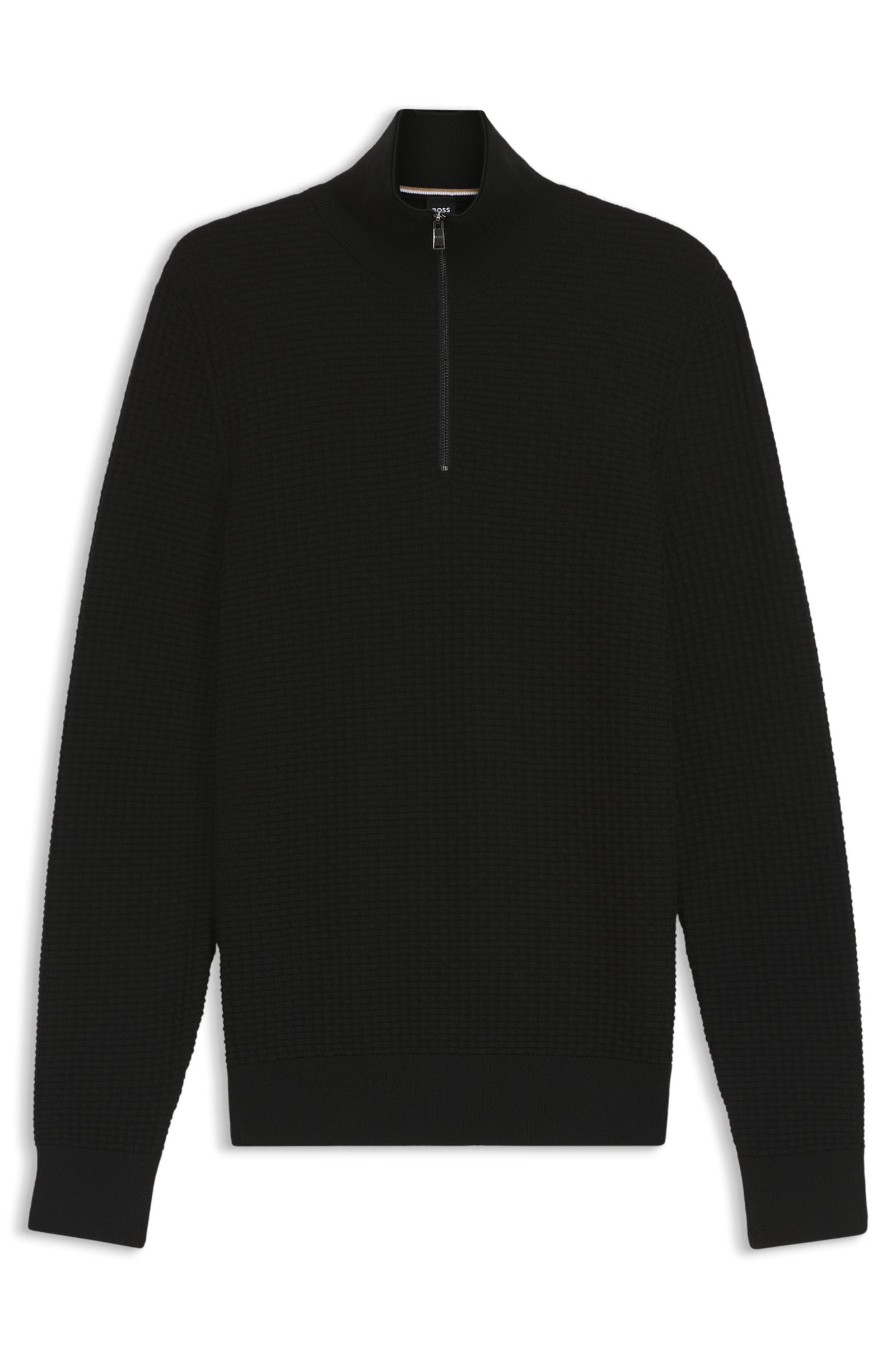 Great for layering in cooler weather, this BOSS Menswear sweater has a straight fit and quarter zip. Rich structure in soft cotton.