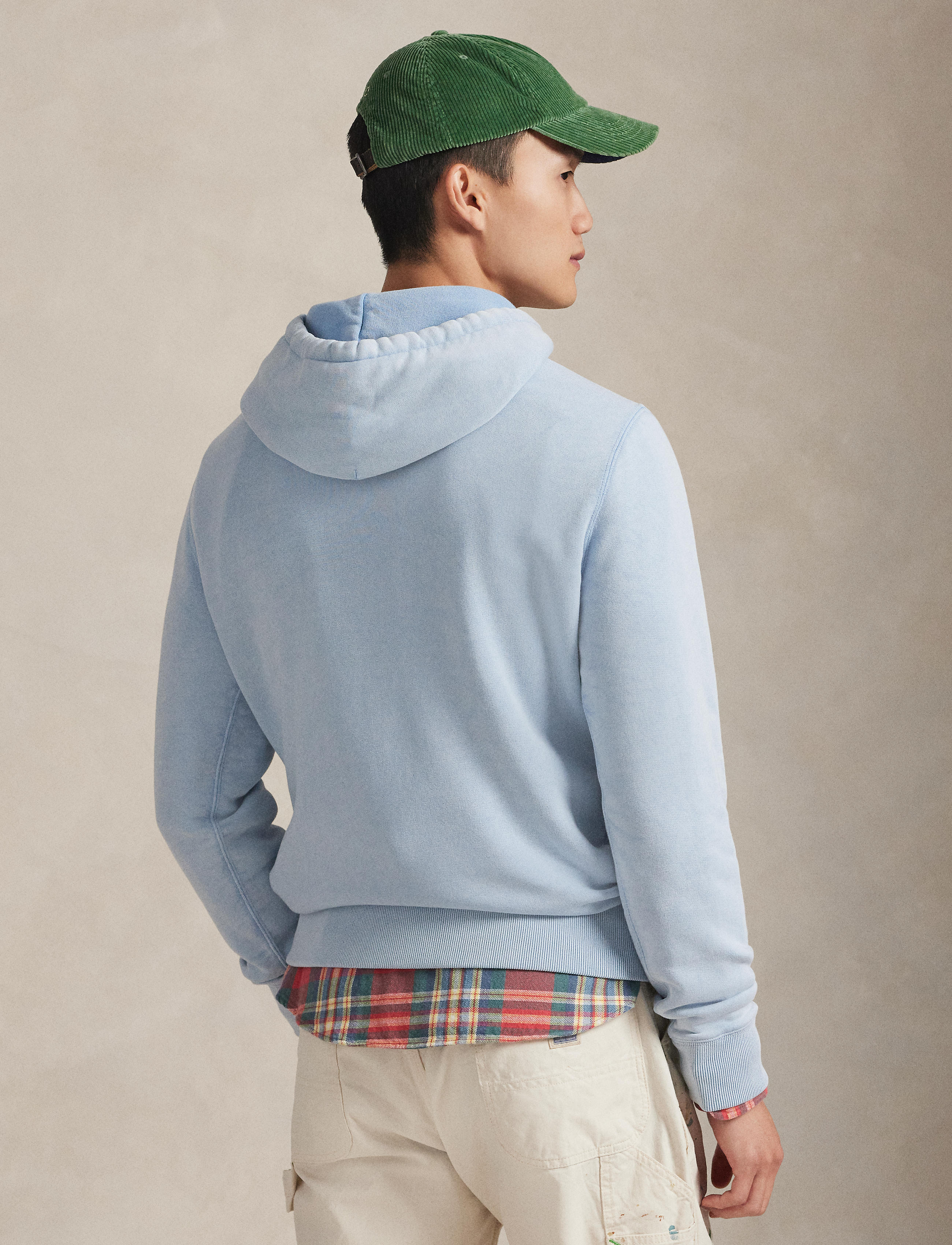 This garment-dyed hoodie is crafted with a plush cotton blend and printed at the front with our beloved mascot, the Polo Bear.