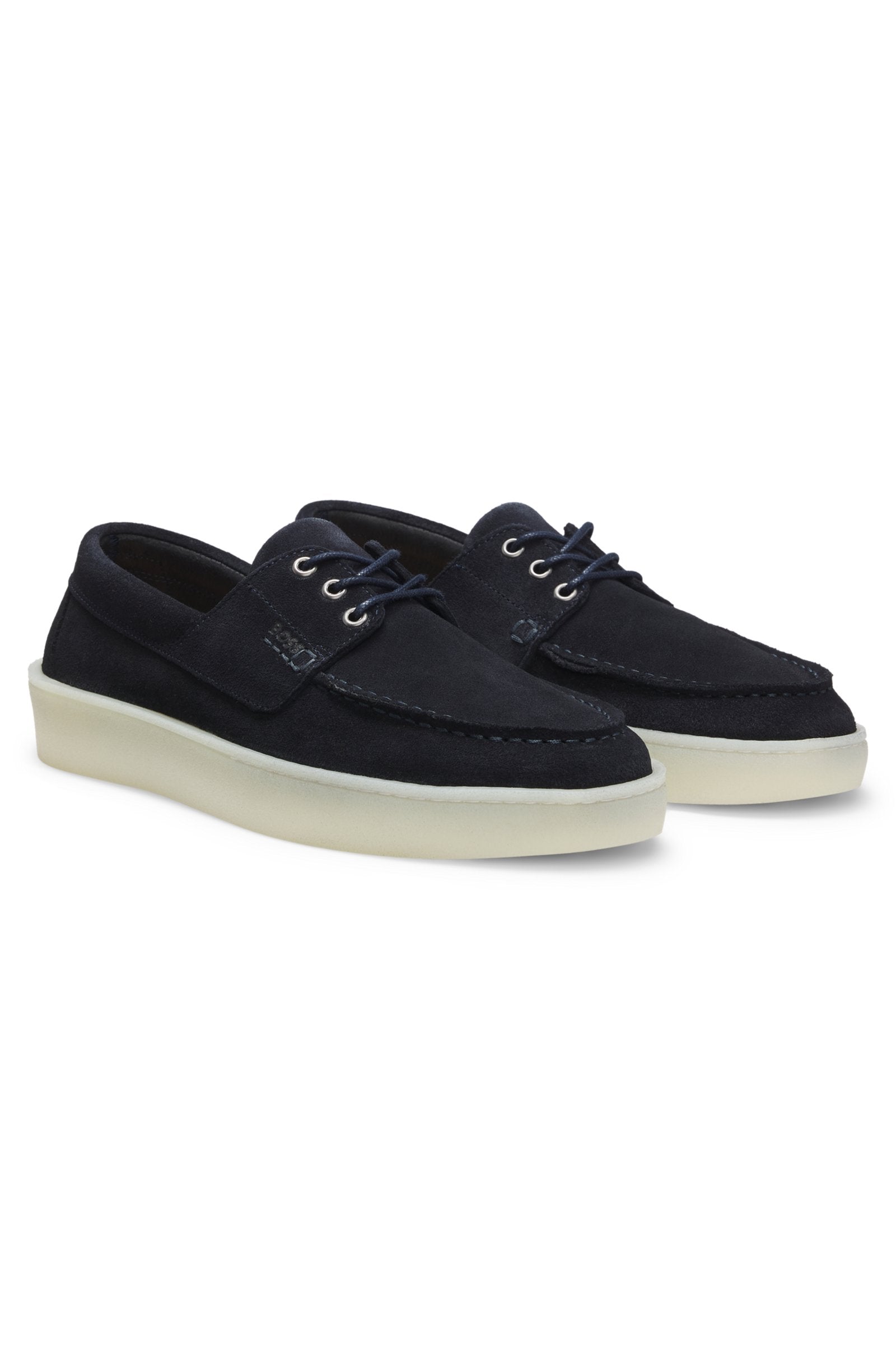 Crafted in soft suede with metal eyelets and embossed branding, these BOSS Menswear loafers are an instant classic. Slightly translucent, textured outsole.