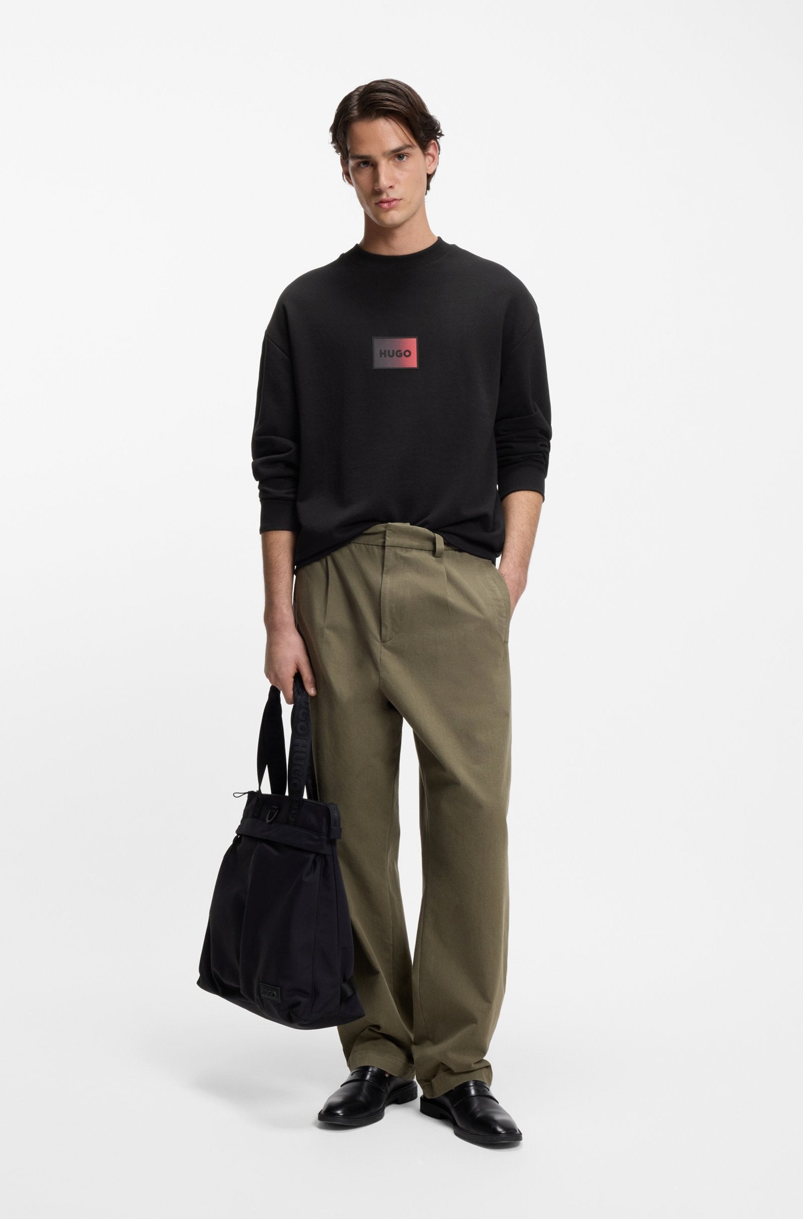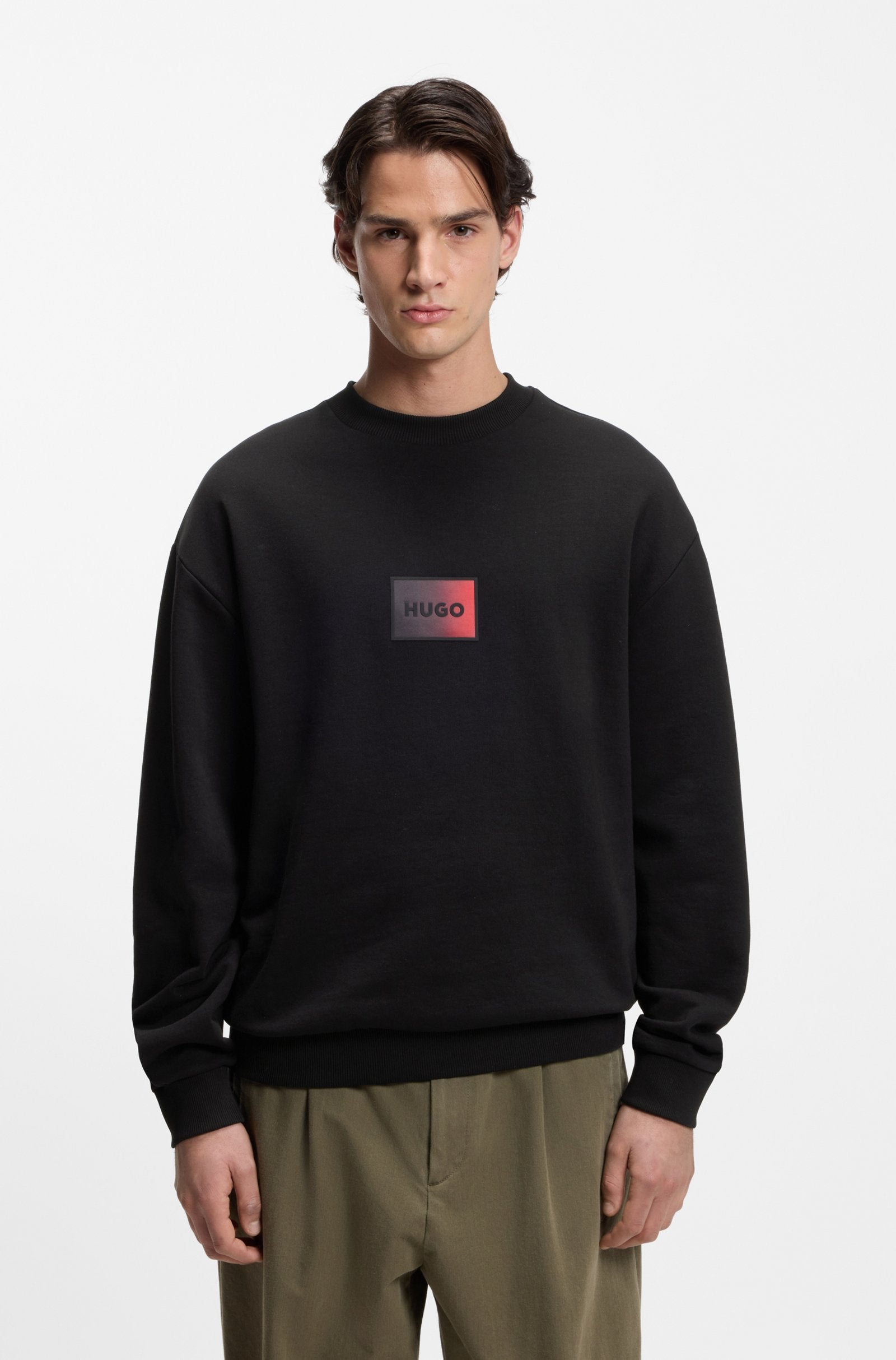 In comfy cotton terry with a fresh gradient logo, this HUGO Menswear sweatshirt is an instant casual classic. Cut to a relaxed fit.