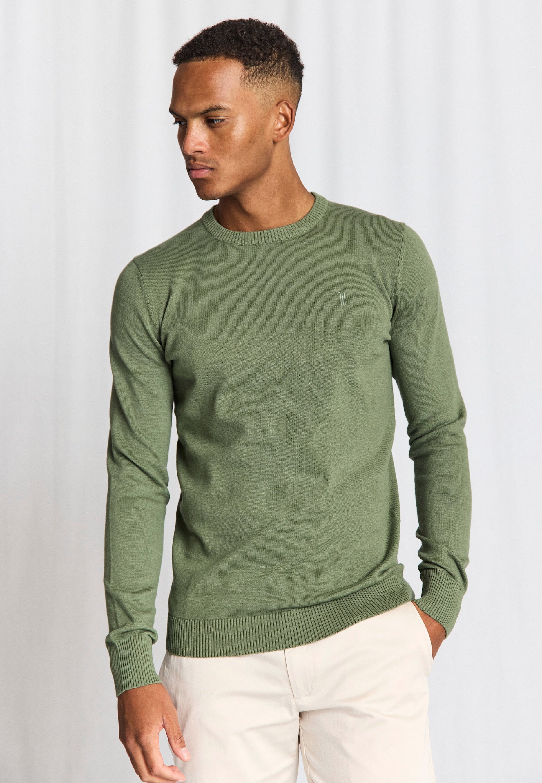 Classic O-neck sweater in 100% cotton with a discreet tone-in-tone embroidered logo on the chest. The sweater has a timeless fit, which makes it easy to style for both everyday and more casual outfits.
