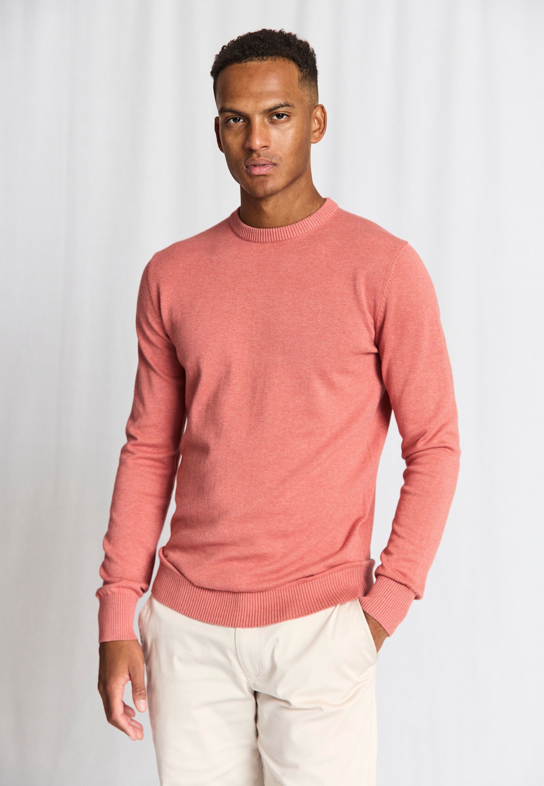 Classic O-neck sweater in 100% cotton with a discreet tone-in-tone embroidered logo on the chest. The sweater has a timeless fit, which makes it easy to style for both everyday and more casual outfits.