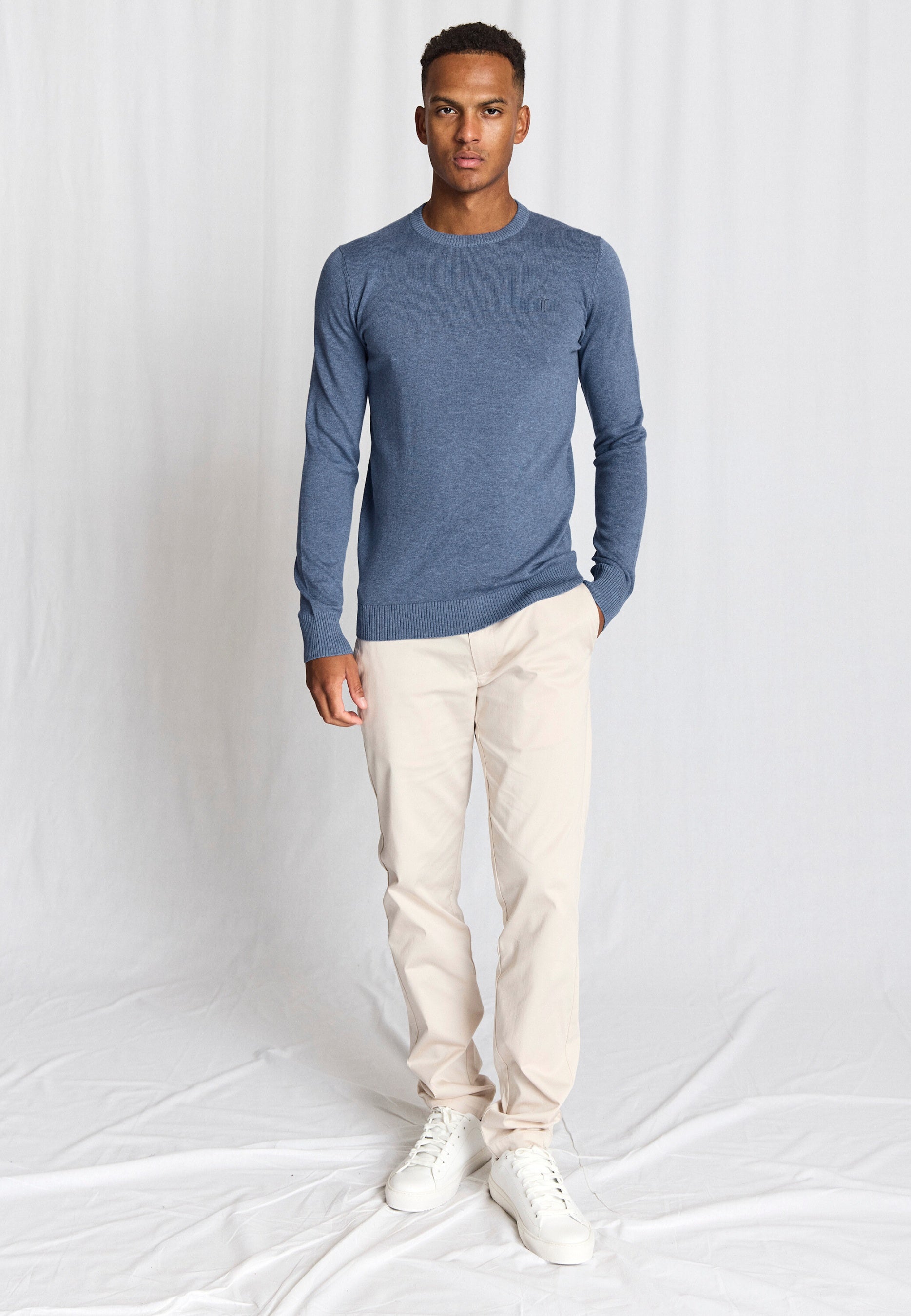Classic O-neck sweater in 100% cotton with a discreet tone-in-tone embroidered logo on the chest. The sweater has a timeless fit, which makes it easy to style for both everyday and more casual outfits.