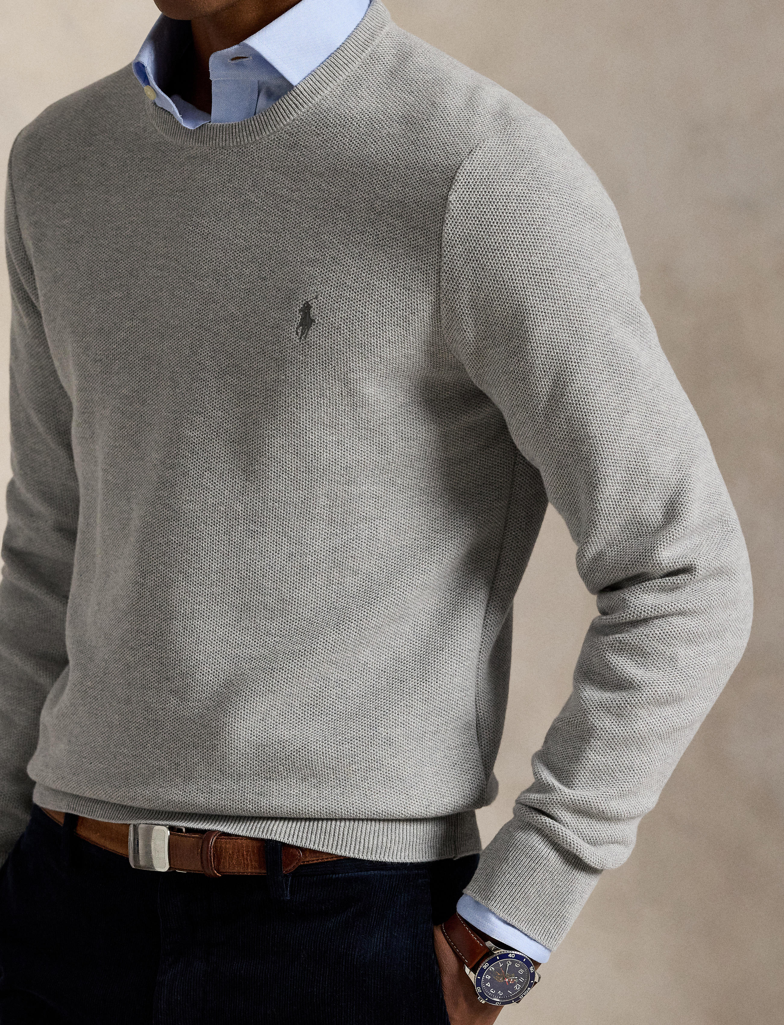 We've reinterpreted our iconic mesh fabric with soft cotton yarn to create this crewneck jumper. Ralph Lauren partners with Better Cotton™ to improve cotton farming globally. Better Cotton trains farmers to use water efficiently, care for the health of soil and natural habitats, reduce use of the most harmful chemicals and implement the principles of decent work.