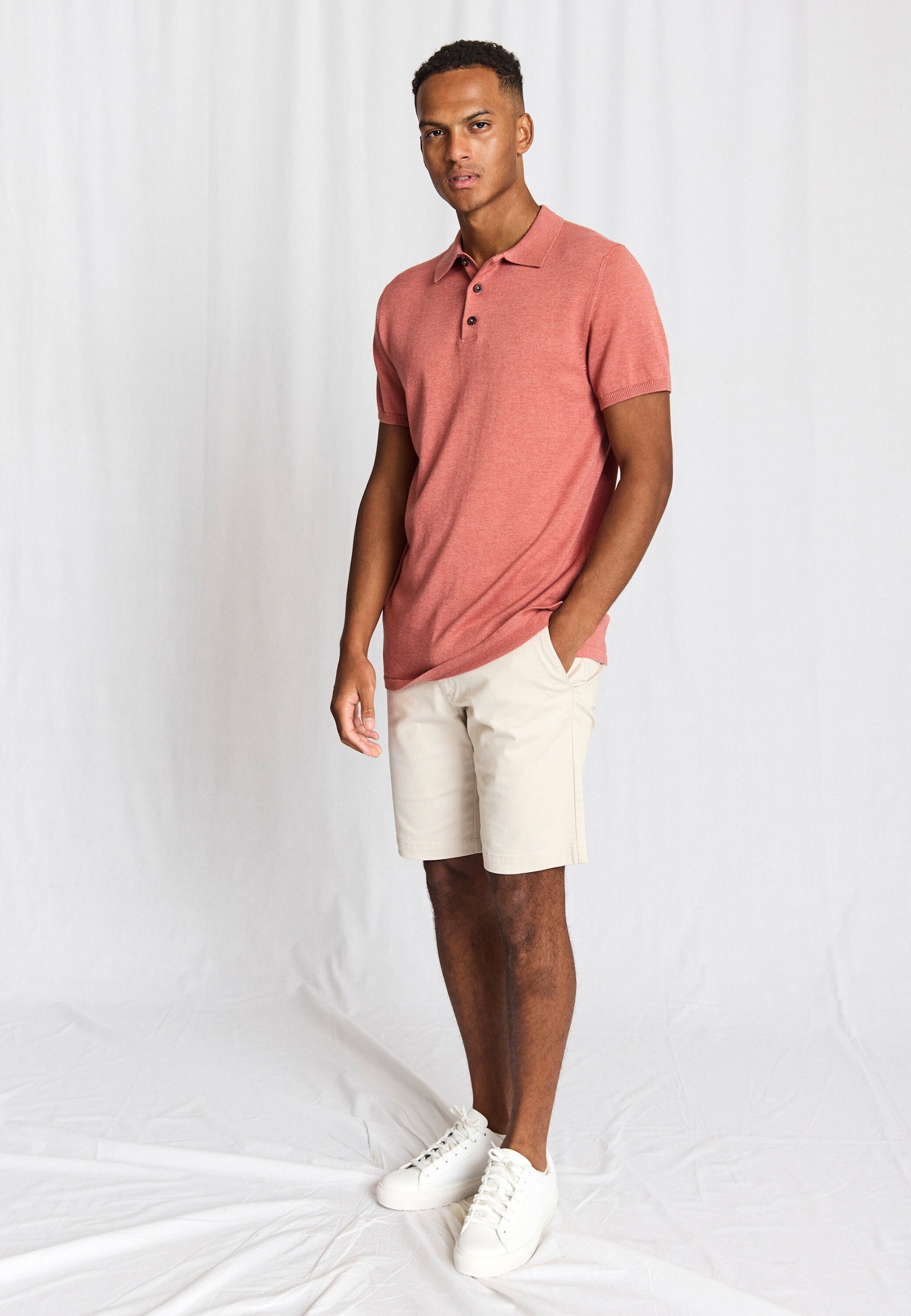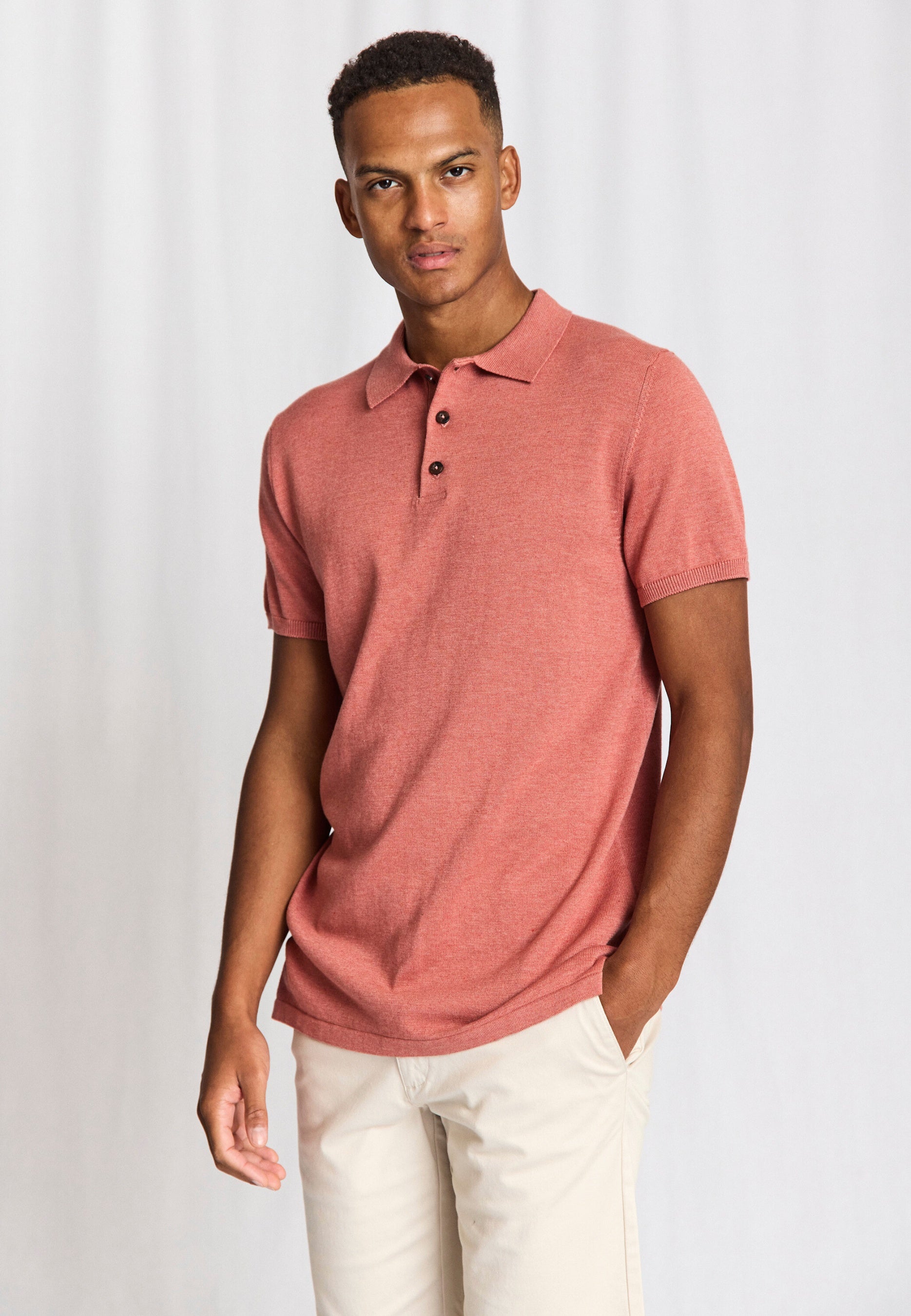 Soft, knitted polo shirt in cotton and tencel with a regular collar and placket with brown horn-look buttons. The polo shirt has a timeless fit that makes it easy to style both alone and over shirts for a relaxed, sophisticated look.