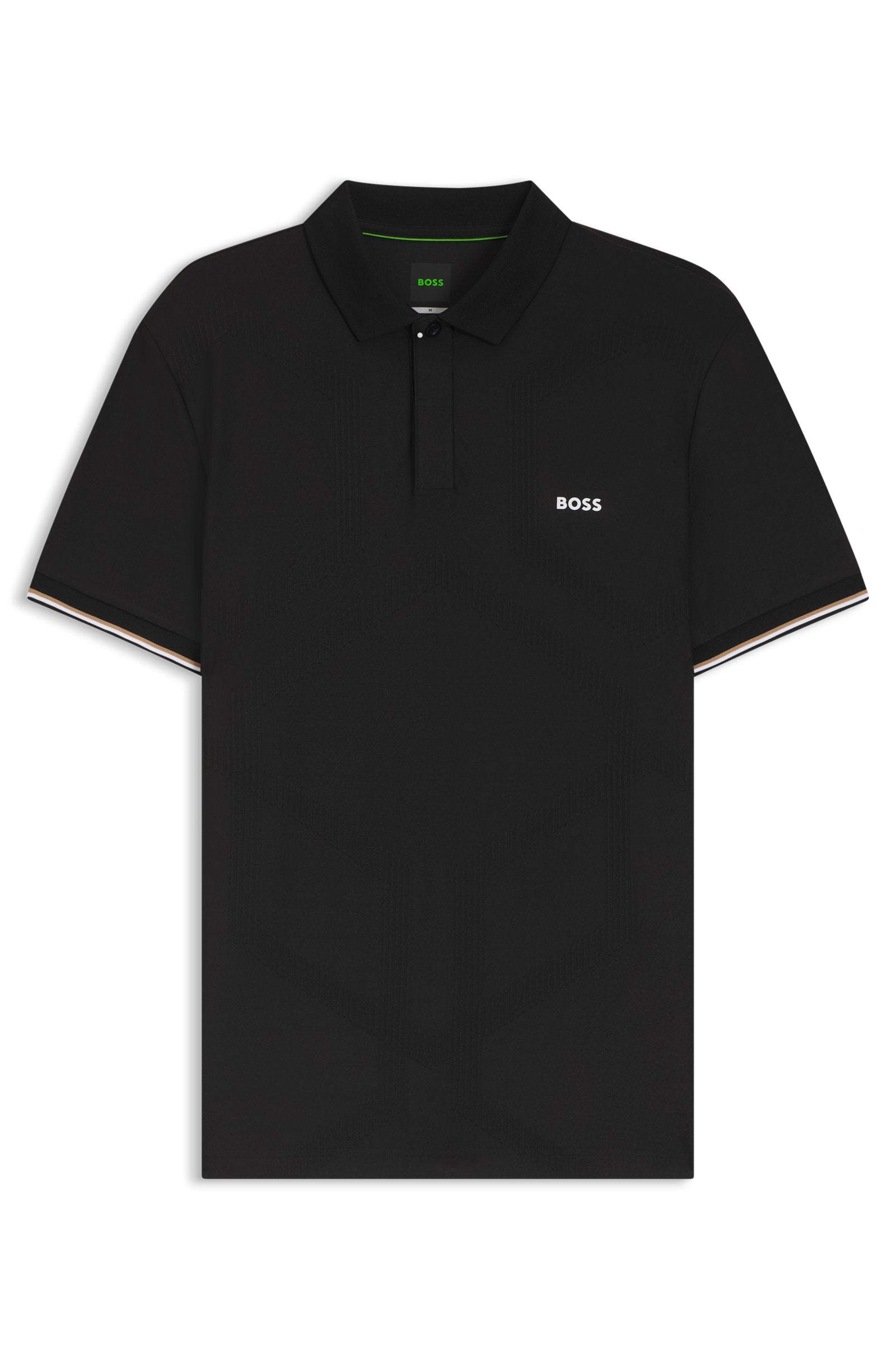 Cut in bodymapping jersey with quick-dry performance, this regular BOSS Menswear polo shirt will upgrade any casual look. Contrast logo print. Signature cuff stripes.
