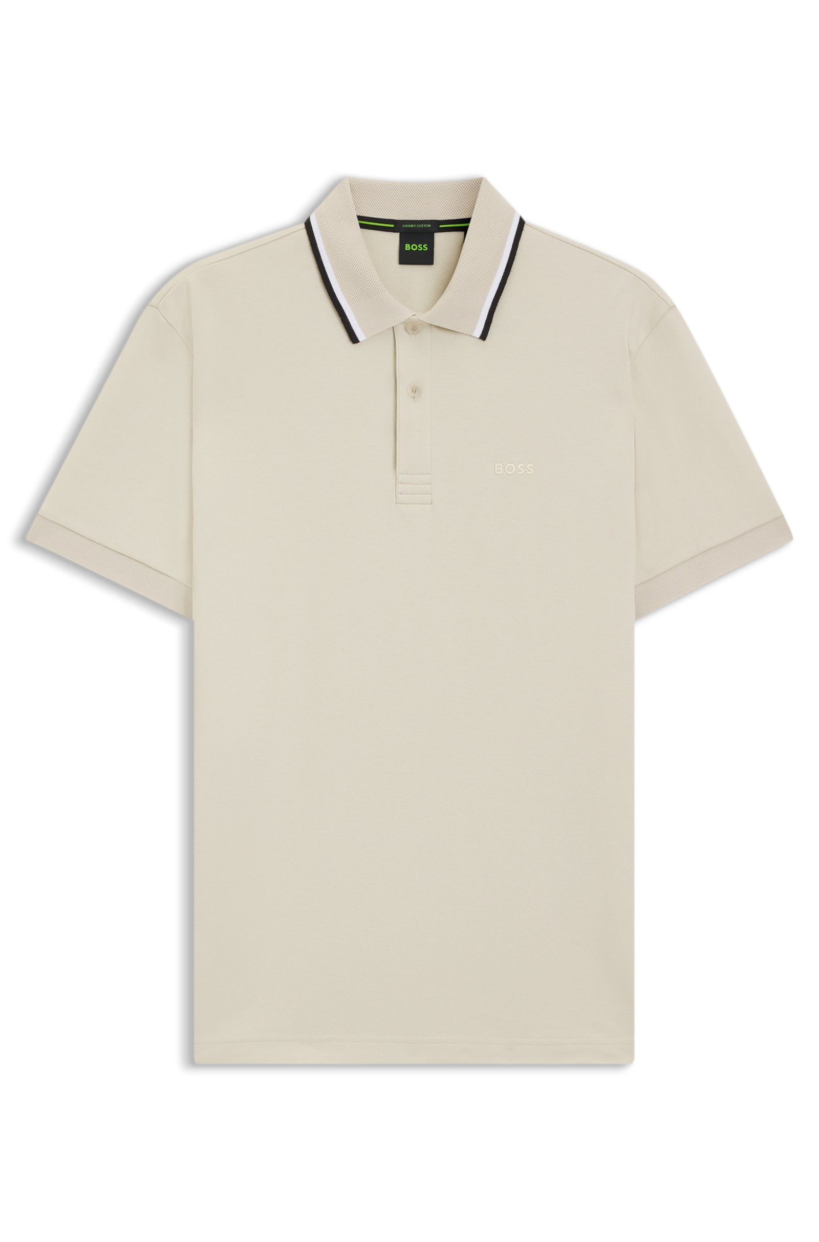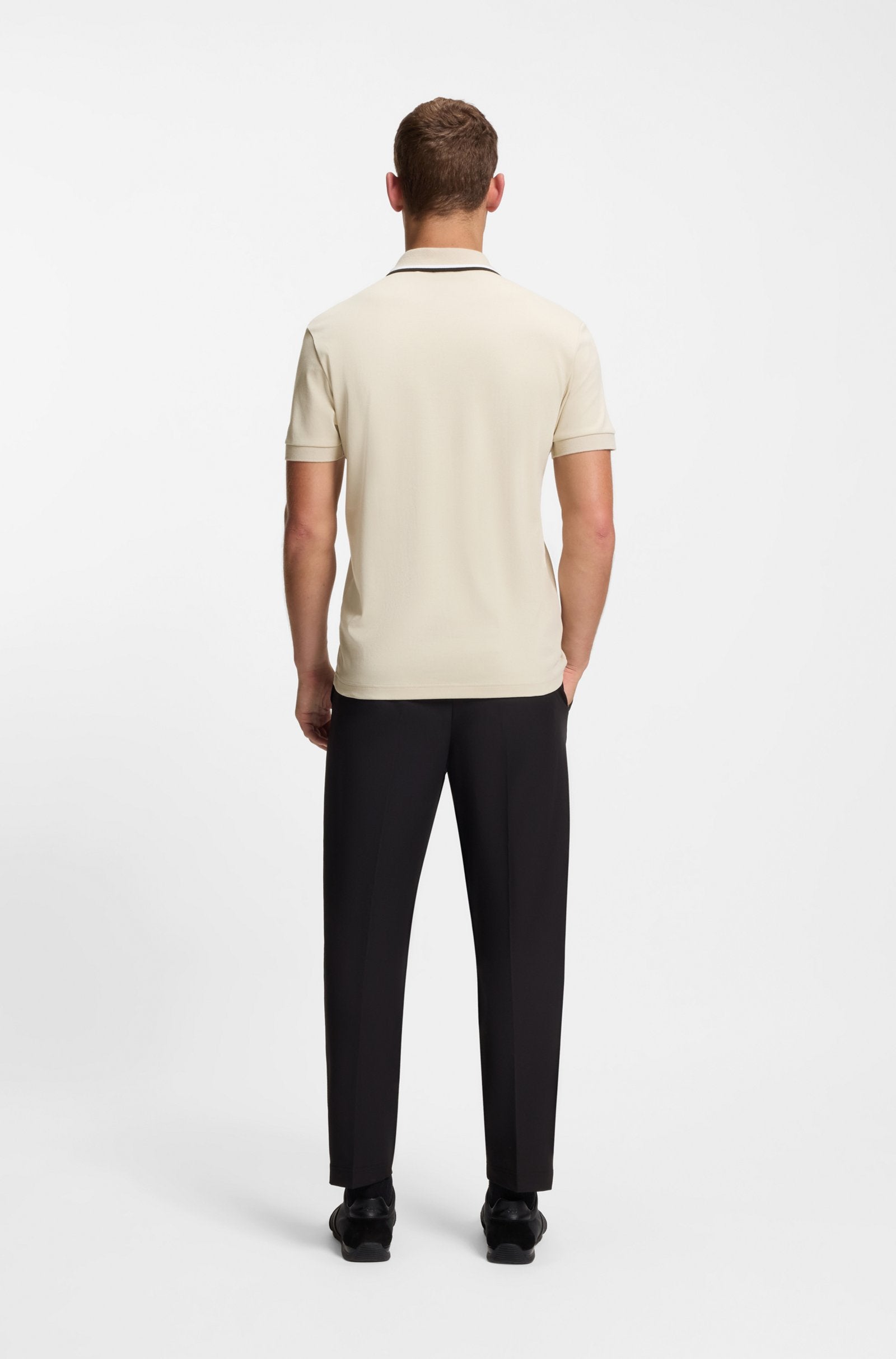 With a slim profile in interlock cotton, this BOSS Menswear polo shirt will quickly become a favorite. Collar with structure and stripe details. Embroidered logo.