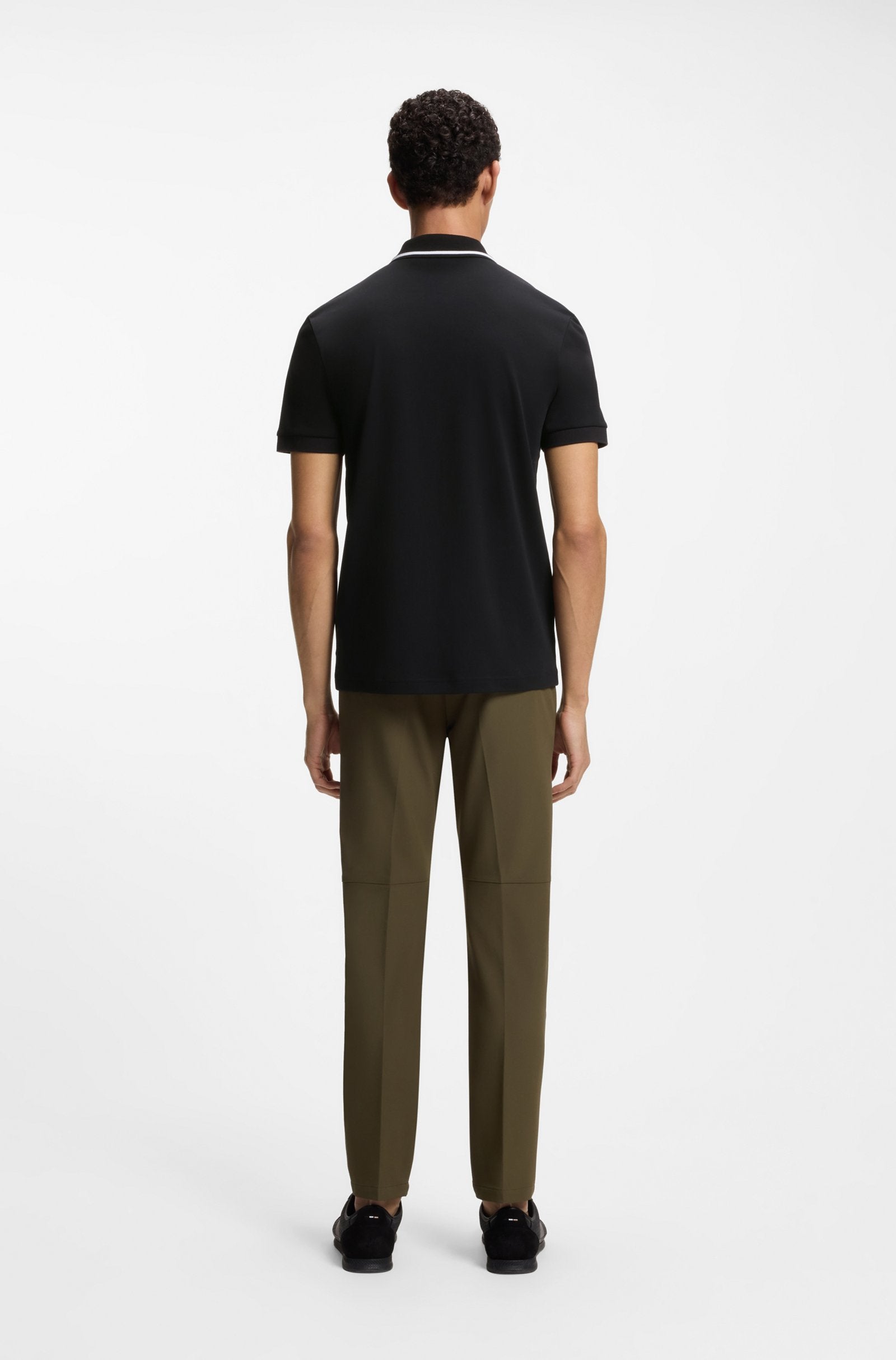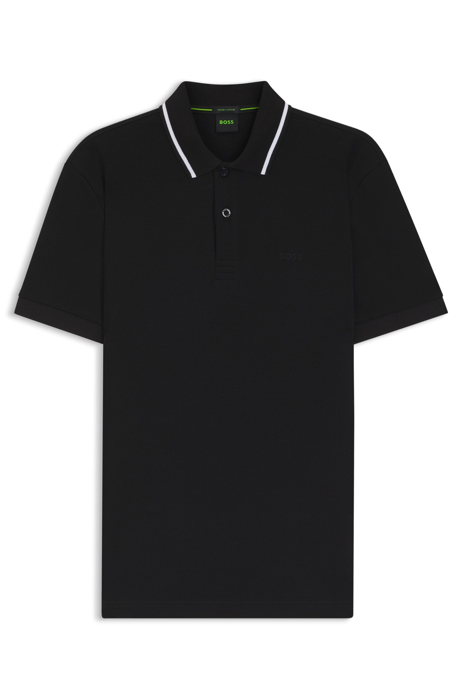 With a slim profile in interlock cotton, this BOSS Menswear polo shirt will quickly become a favorite. Collar with structure and stripe details. Embroidered logo.
