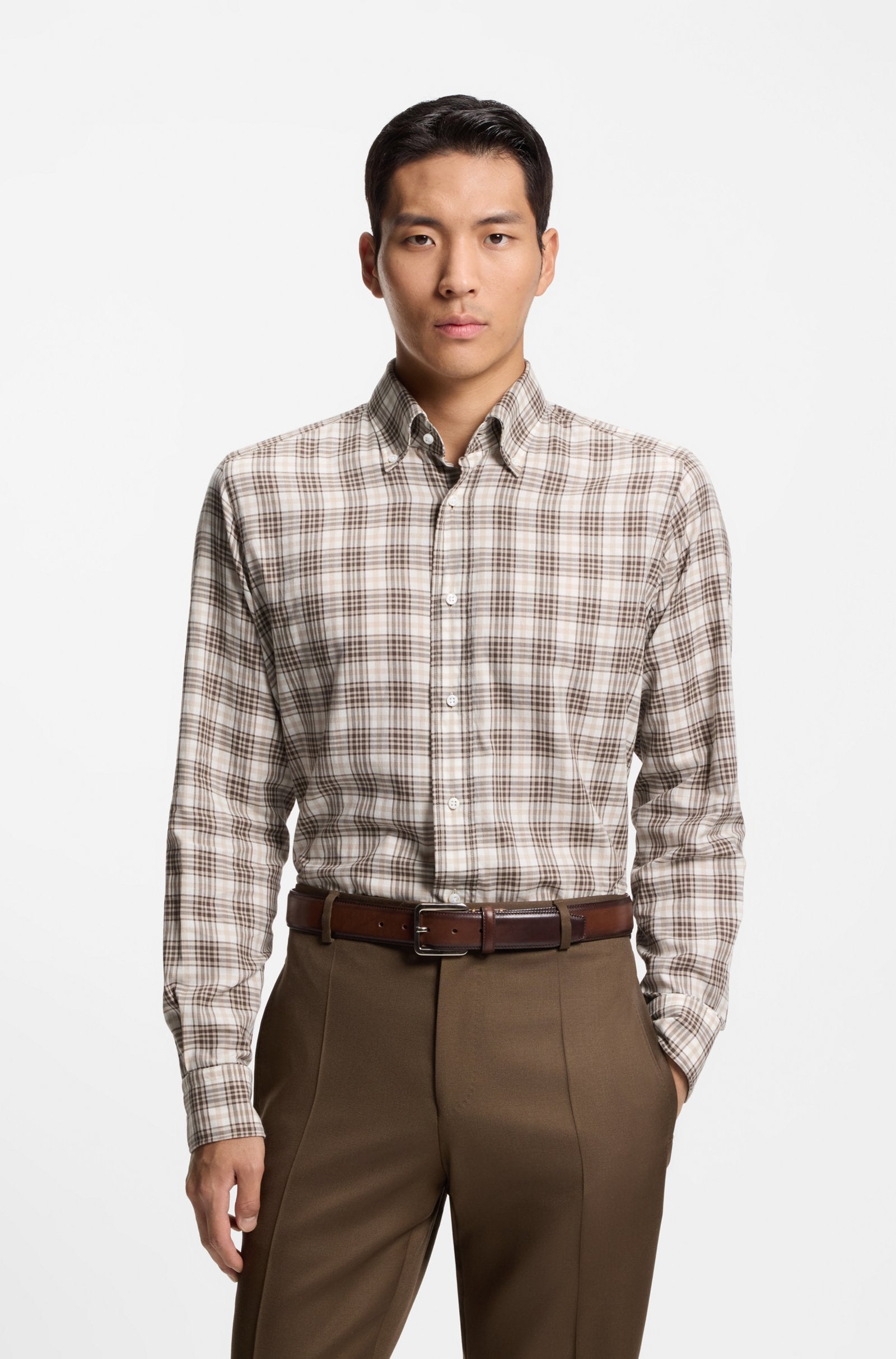 With its easy regular fit and bold check, this BOSS Menswear shirt is a must for any casual collection. Soft Italian-made cotton.