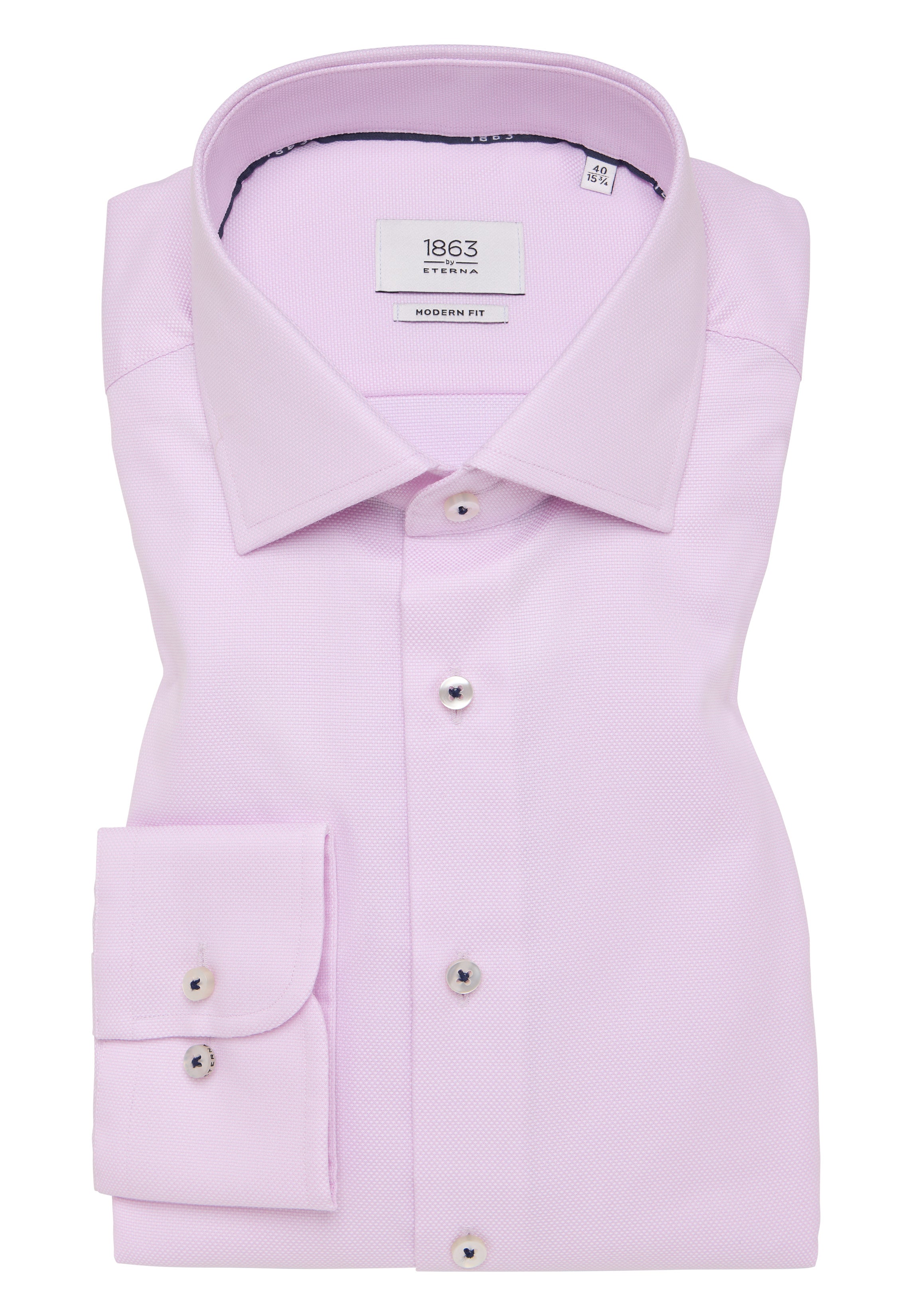 Equipped with a Kent collar and a turned button placket, the shirt appears classic and stylish. The convertible cuff allows flexibility in the choice of closure type. The absence of a chest pocket gives the shirt a clean and elegant appearance. Special qualities, fabrics from cotton with the best refinement, and high-quality workmanship—all these advantages come together in our premium line 1863 by ETERNA.