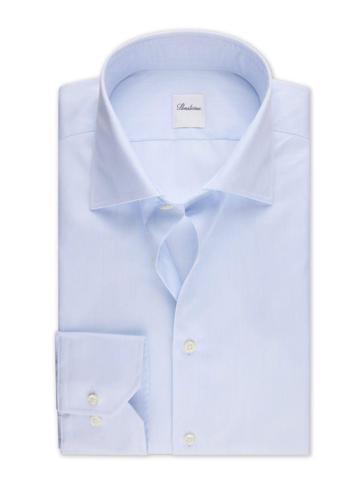 This twill shirt is made of twofold cotton and is detailed with mother of pearl buttons, single cuffs and a cut away collar.