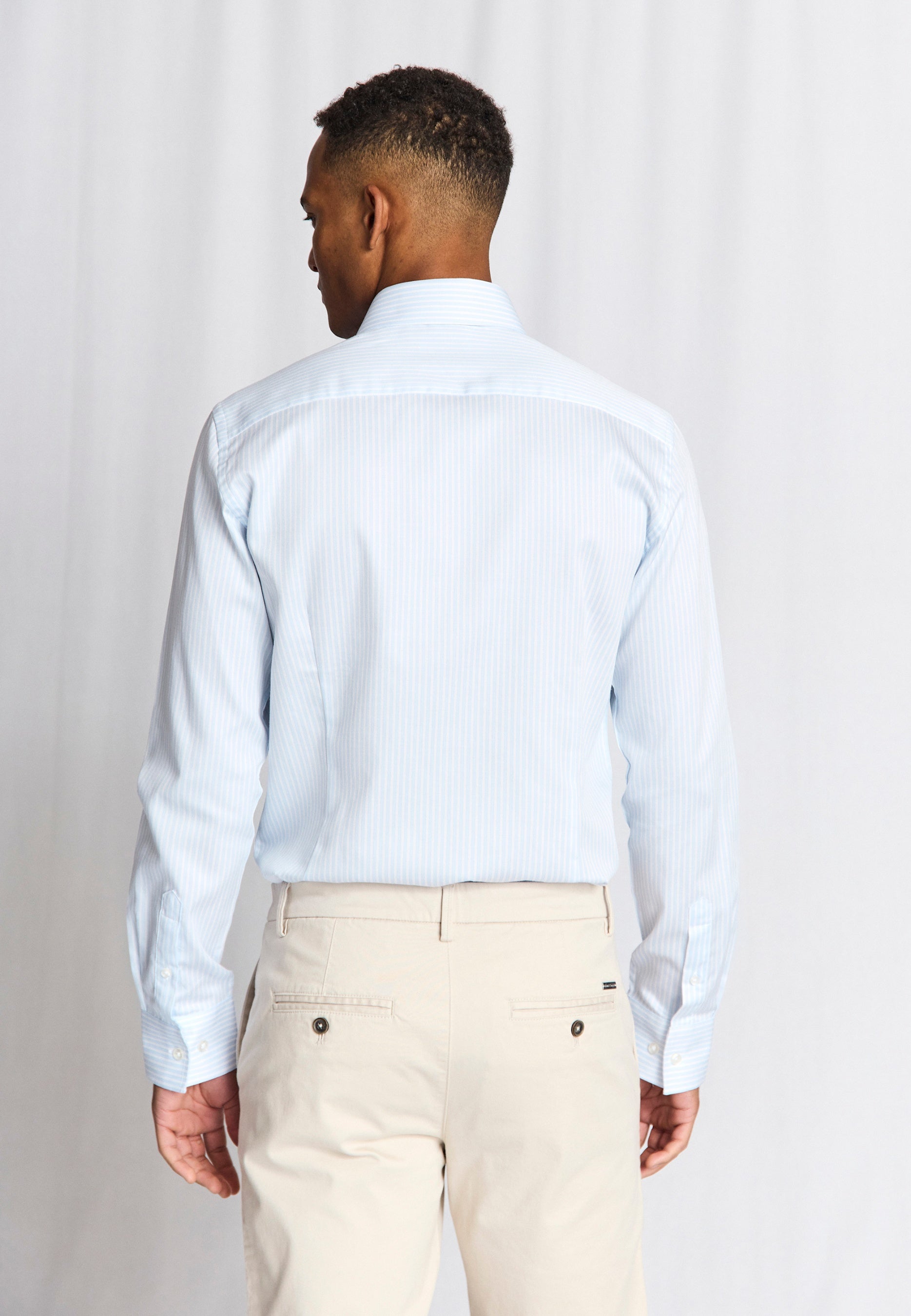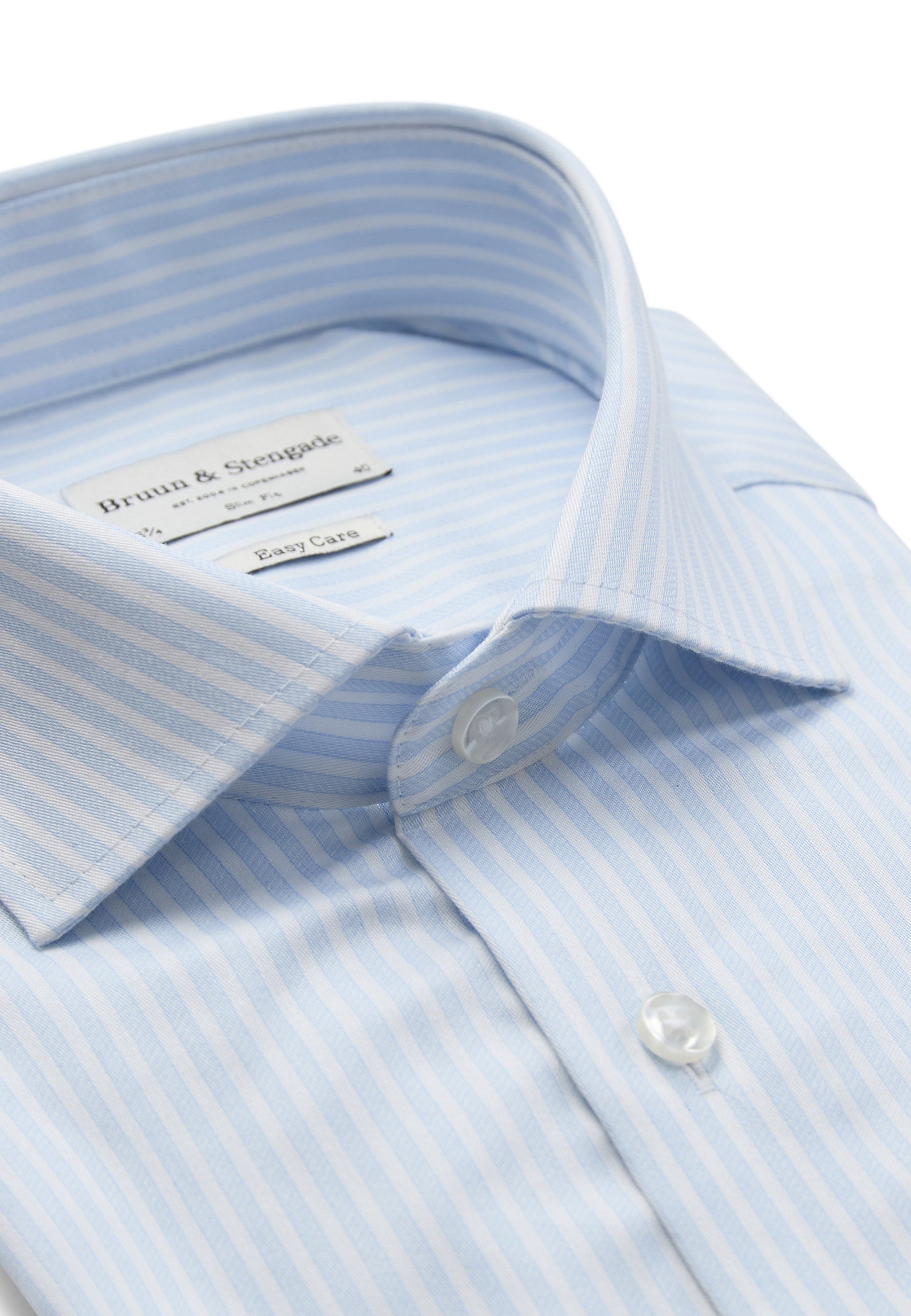 Our slim fit formal shirt is the ideal choice for those who prefer a close-fitting style. The shirt is made from 100% cotton in an elegant dobby weave that adds texture. The classic design features a cutaway collar, French placket with pearl buttons, and adjustable cuffs, making it suitable for both business wear and formal occasions.