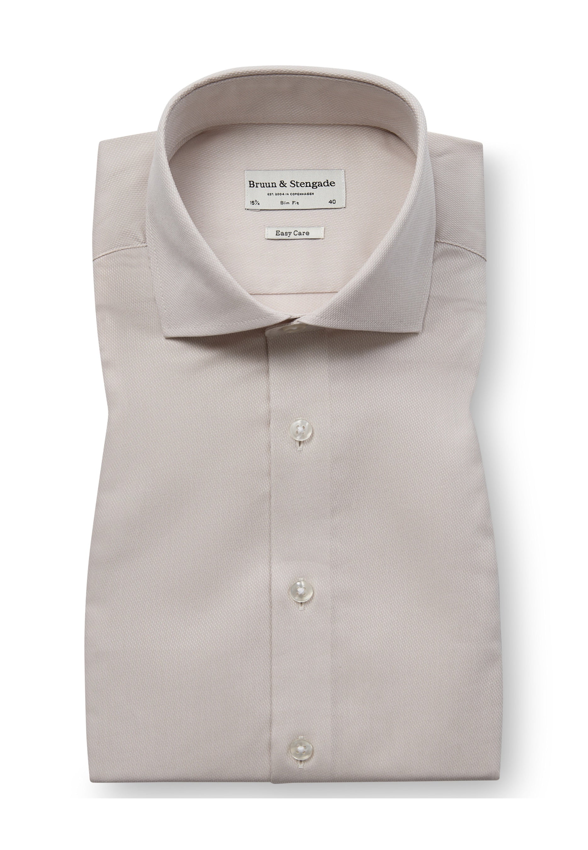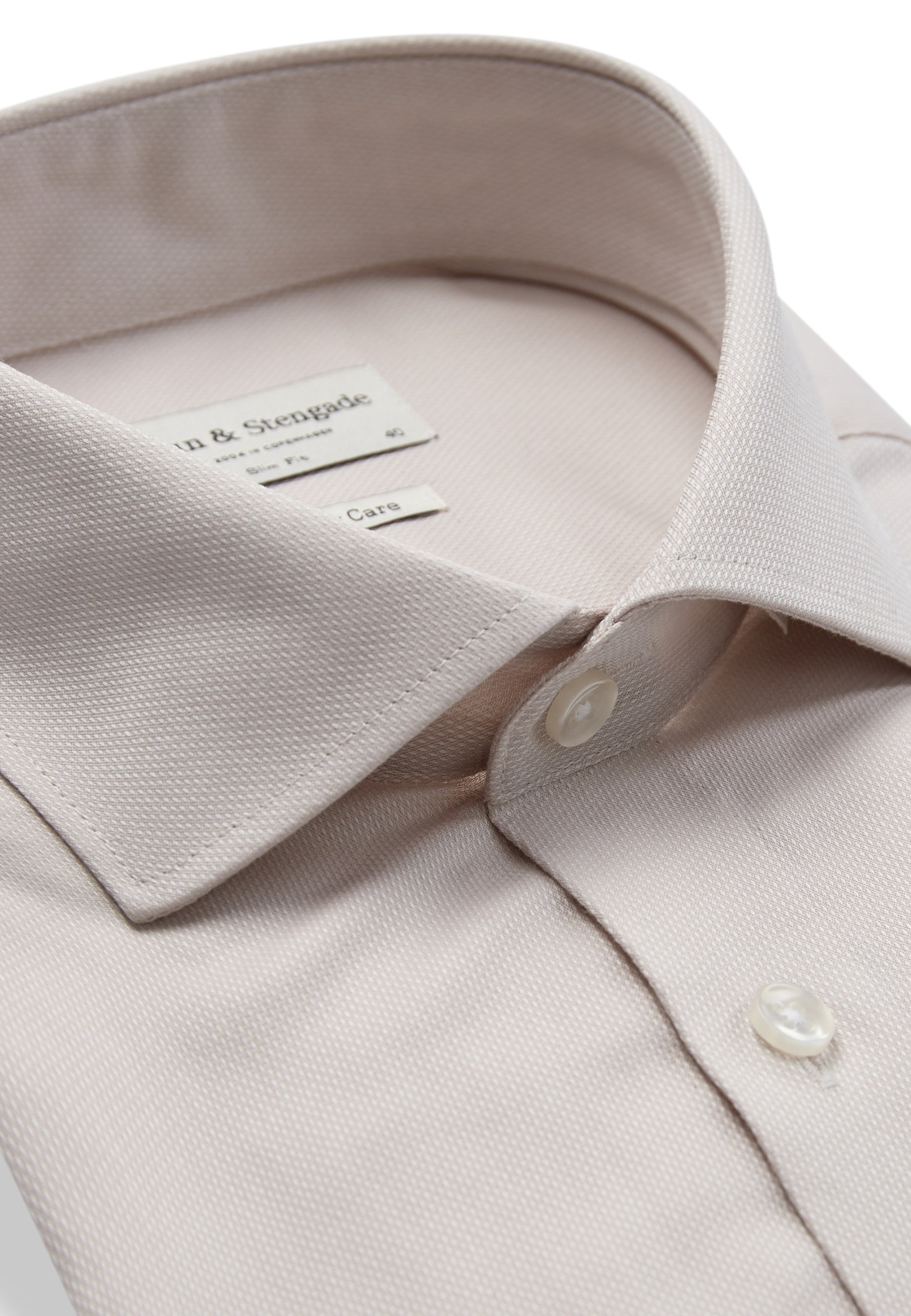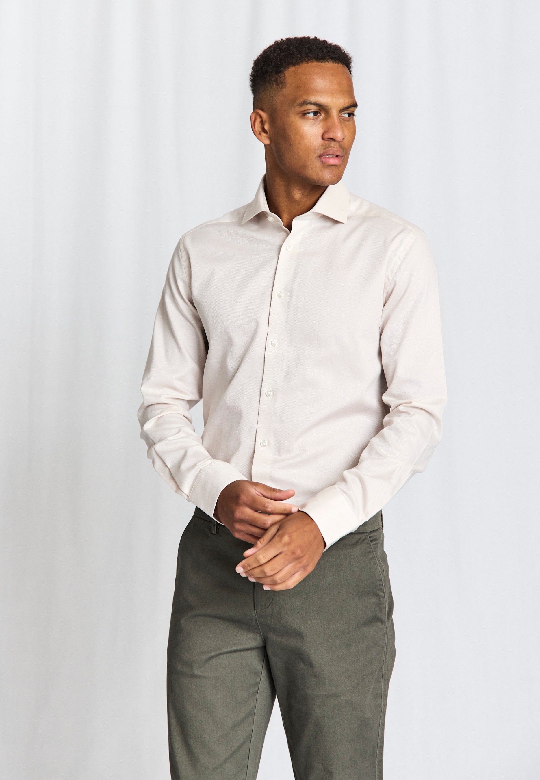 Our slim fit formal shirt is the ideal choice for those who prefer a close-fitting style. The shirt is made from 100% cotton in an elegant dobby weave that adds texture. The classic design features a cutaway collar, French placket with pearl buttons, and adjustable cuffs, making it suitable for both business wear and formal occasions.
