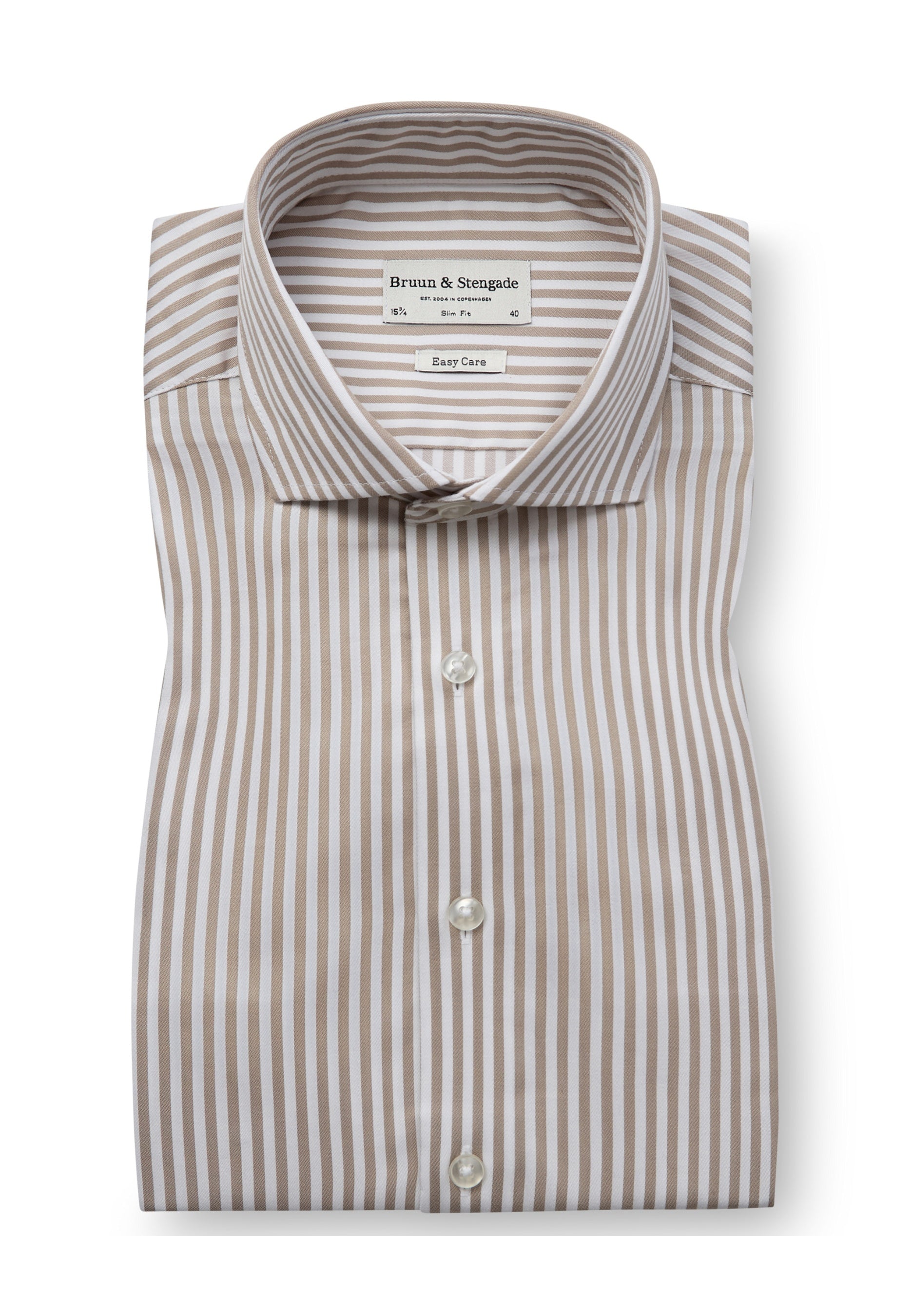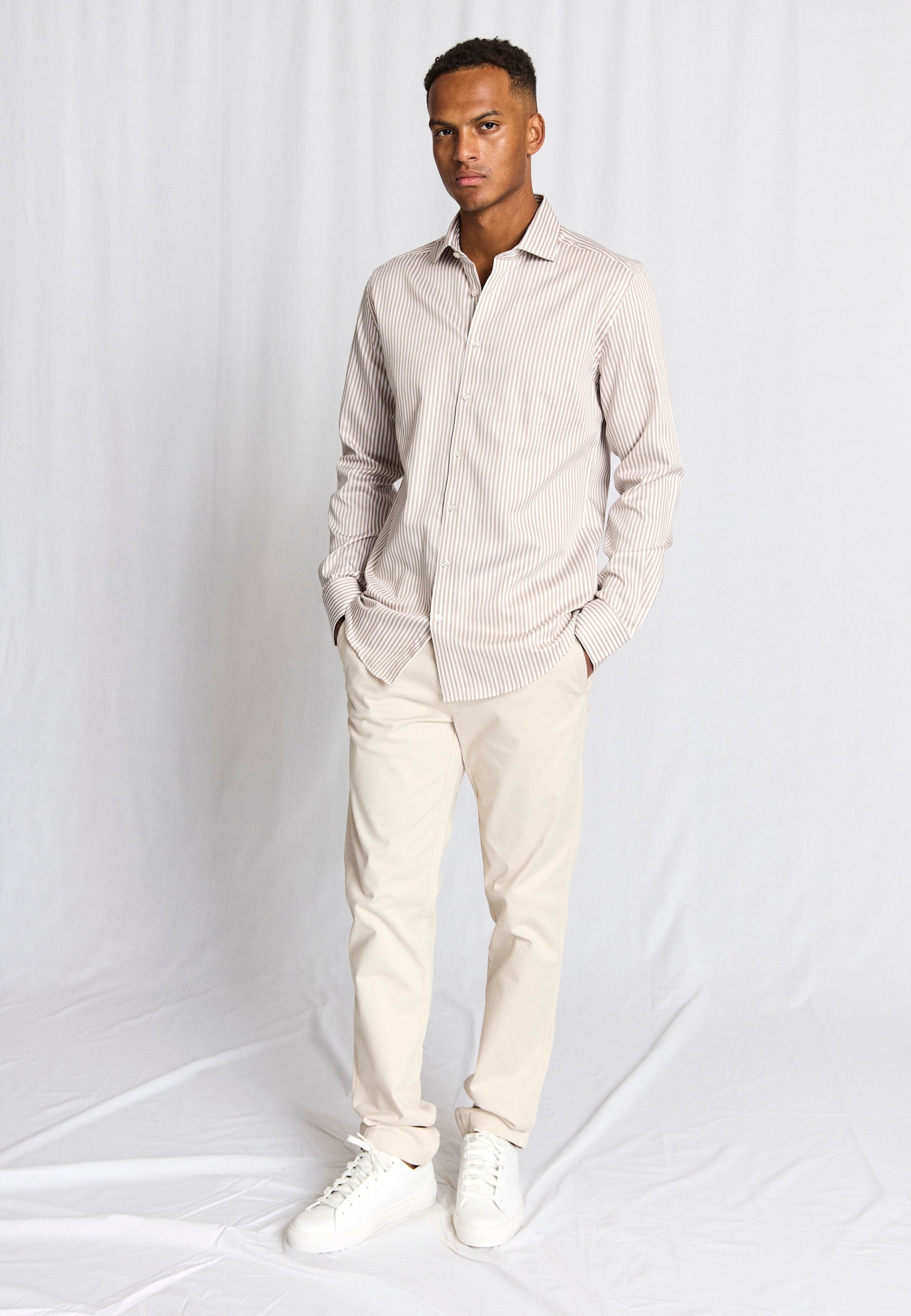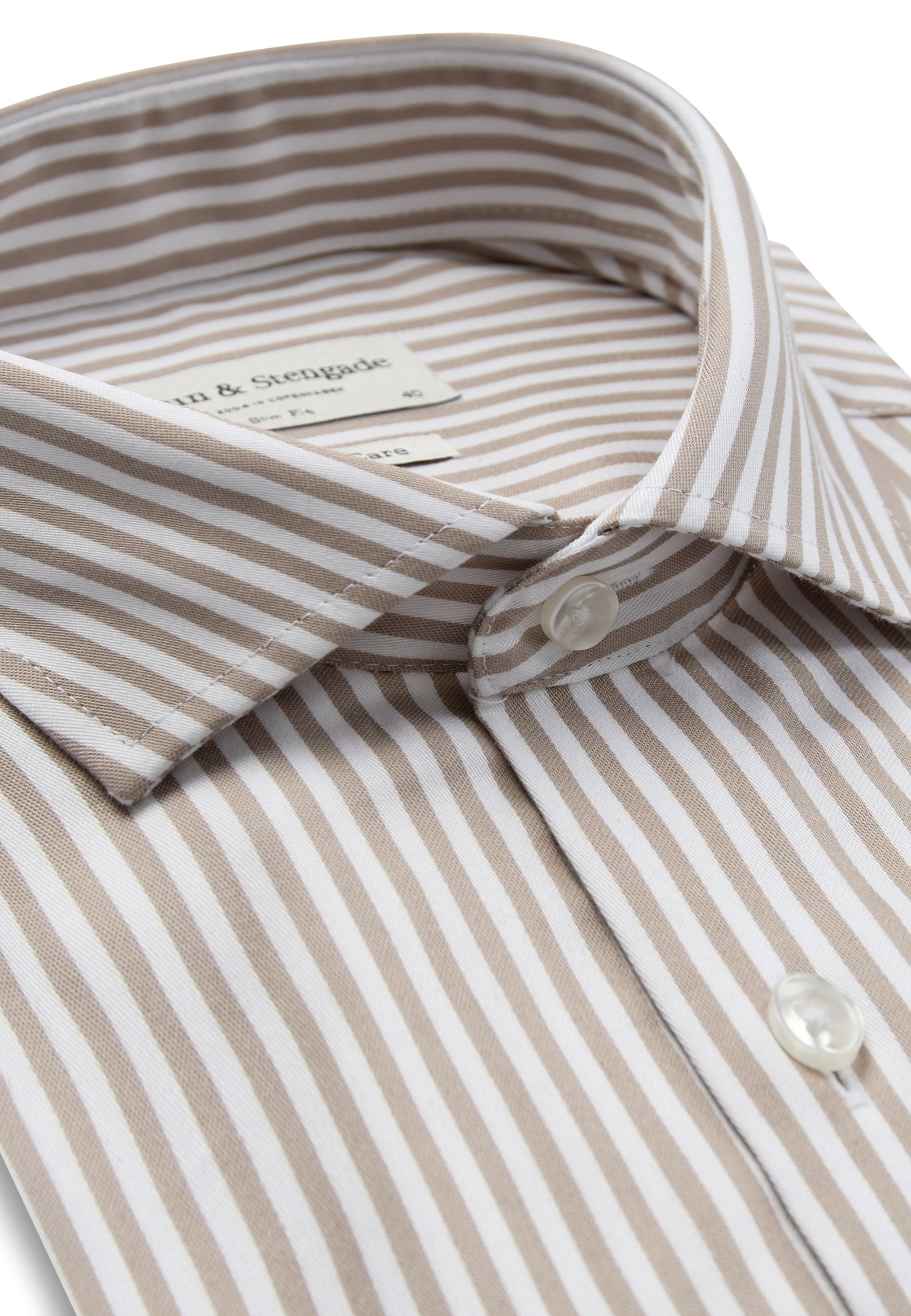 Our slim fit formal shirt is the ideal choice for those who prefer a close-fitting style. The shirt is made from 100% cotton in an elegant dobby weave that adds texture. The classic design features a cutaway collar, French placket with pearl buttons, and adjustable cuffs, making it suitable for both business wear and formal occasions.