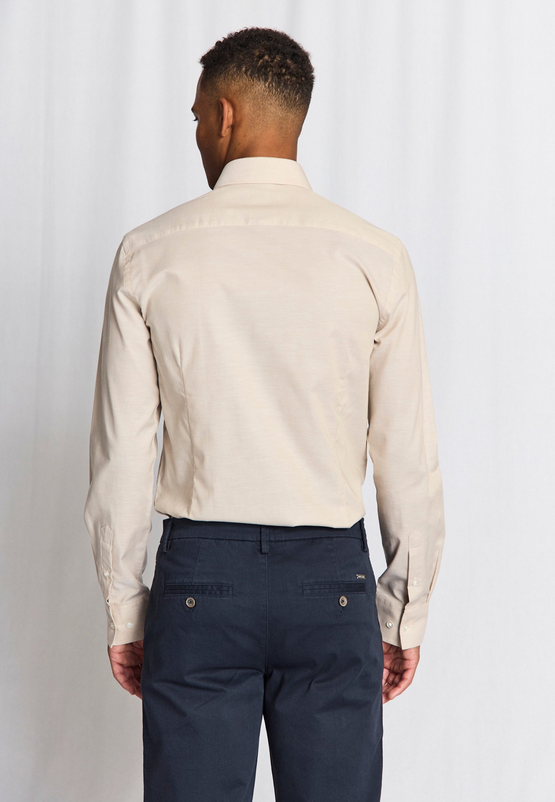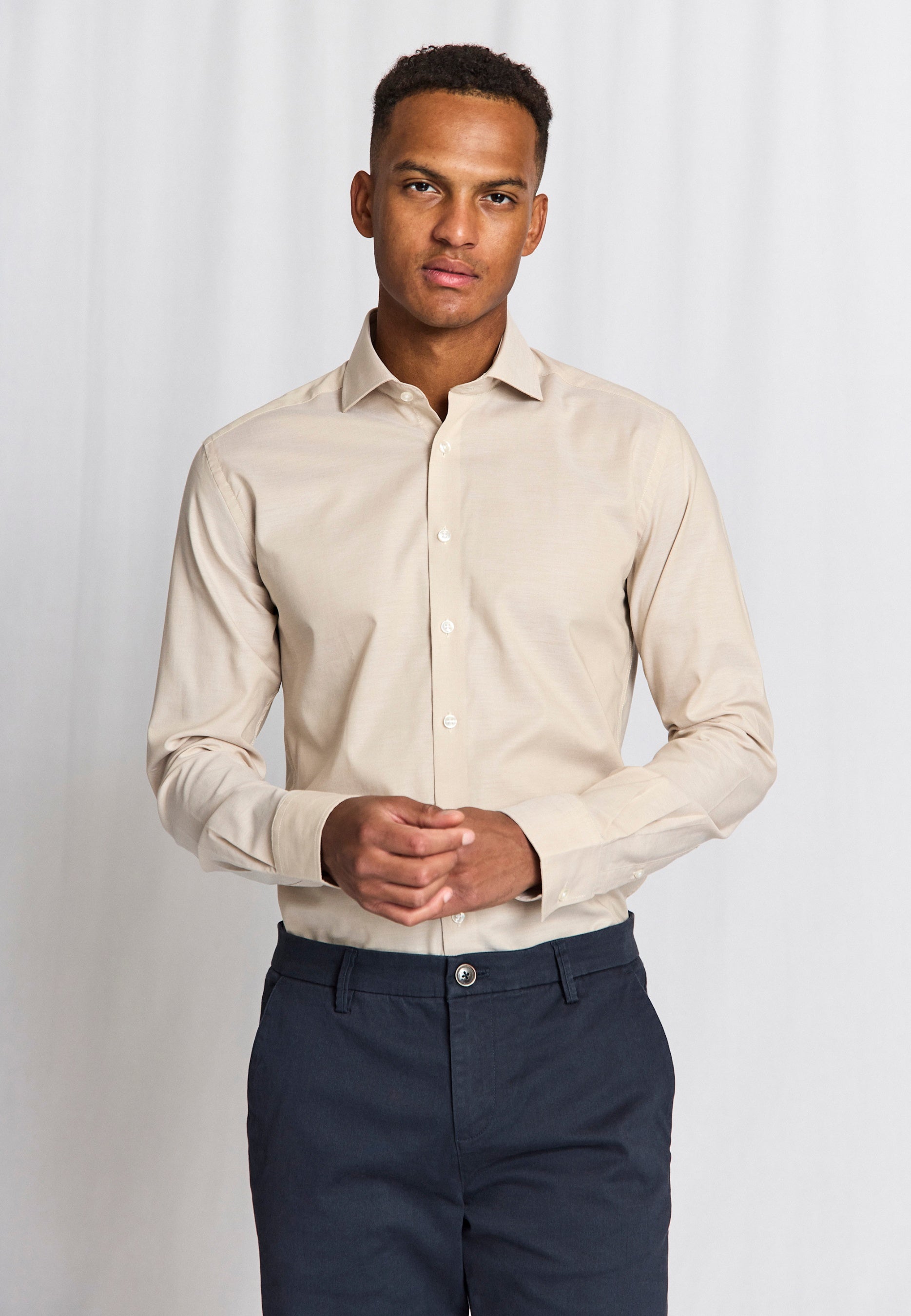 Our slim fit formal shirt is the ideal choice for those who prefer a close-fitting style. The shirt is made from 100% cotton in an elegant dobby weave that adds texture. The classic design features a cutaway collar, French placket with pearl buttons, and adjustable cuffs, making it suitable for both business wear and formal occasions.