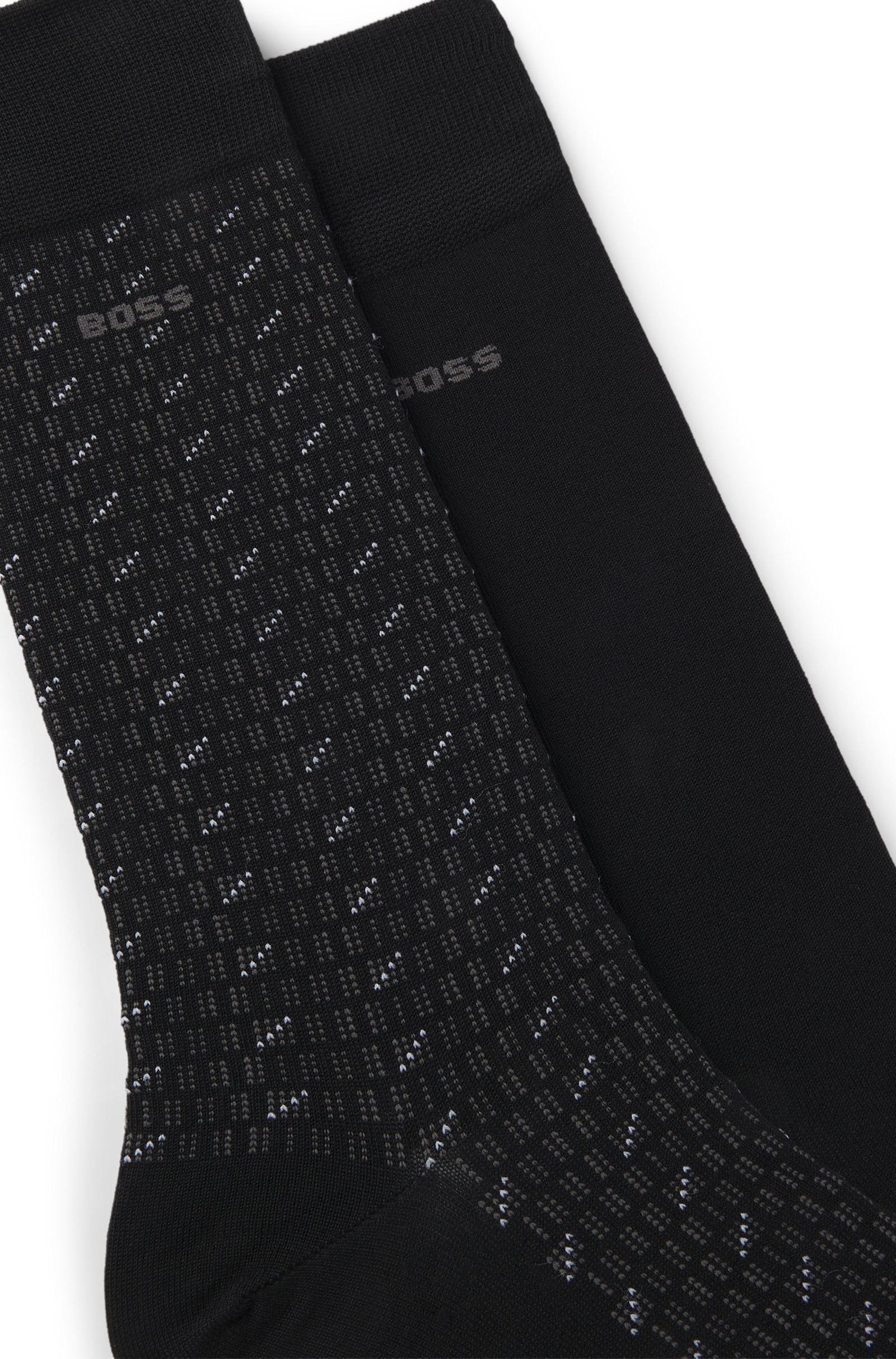 With mercerized cotton and stretch, these two pairs of regular BOSS Menswear socks offer refined, lasting comfort. Patterned and plain with logo details.