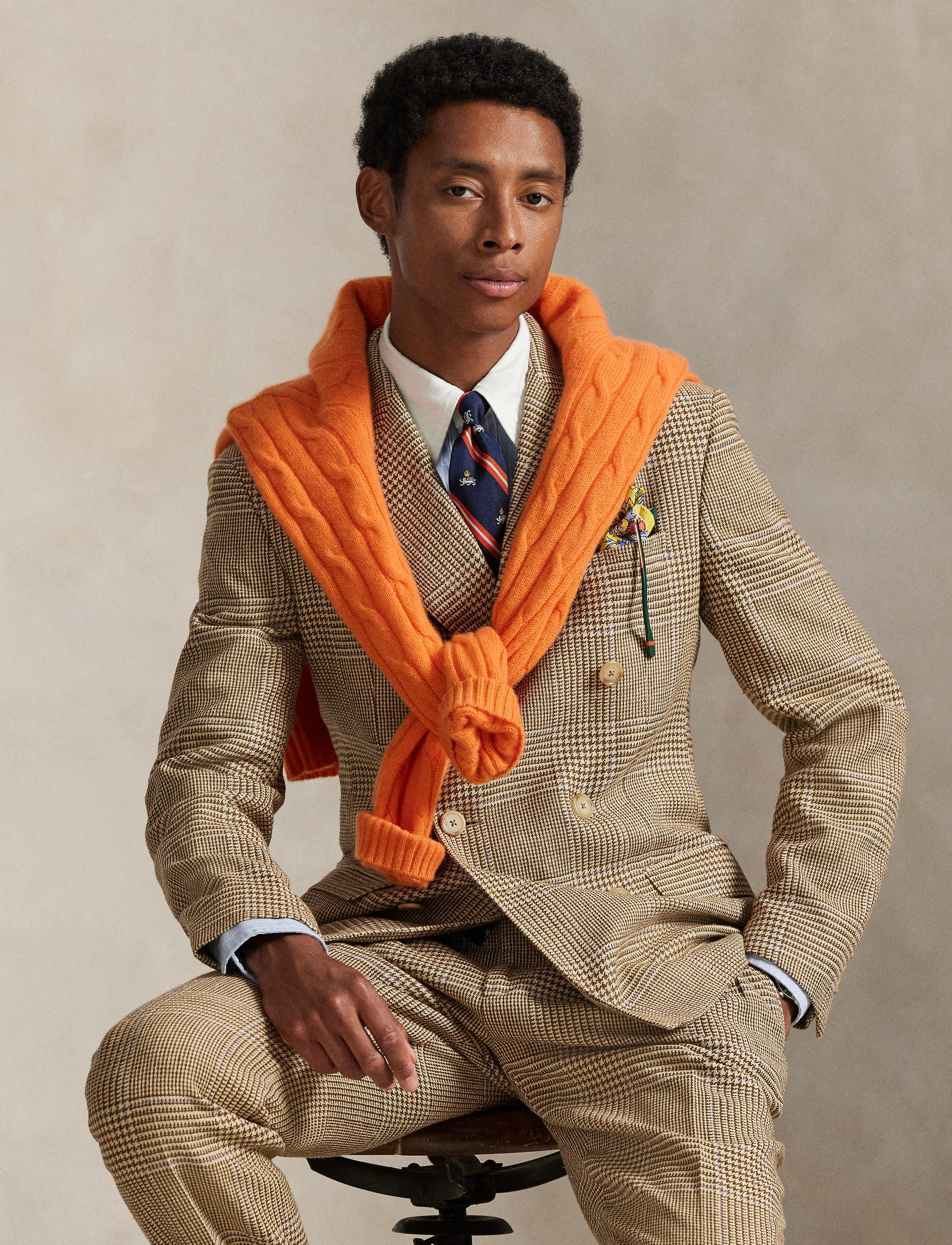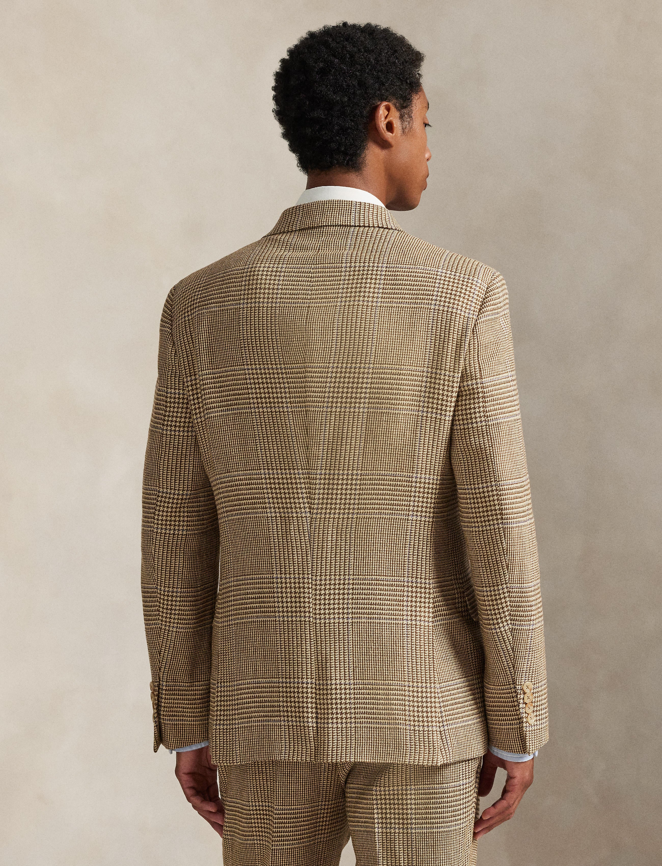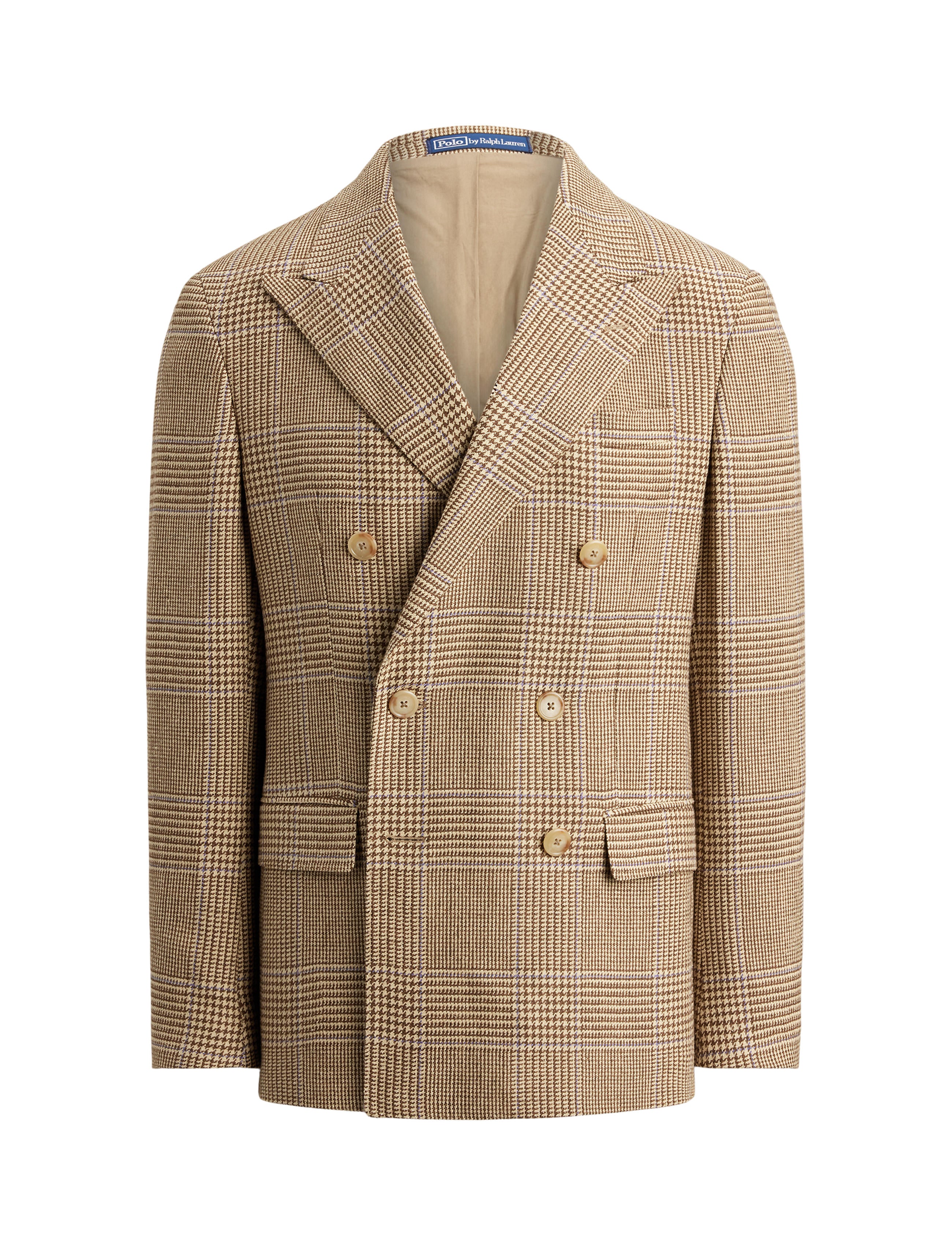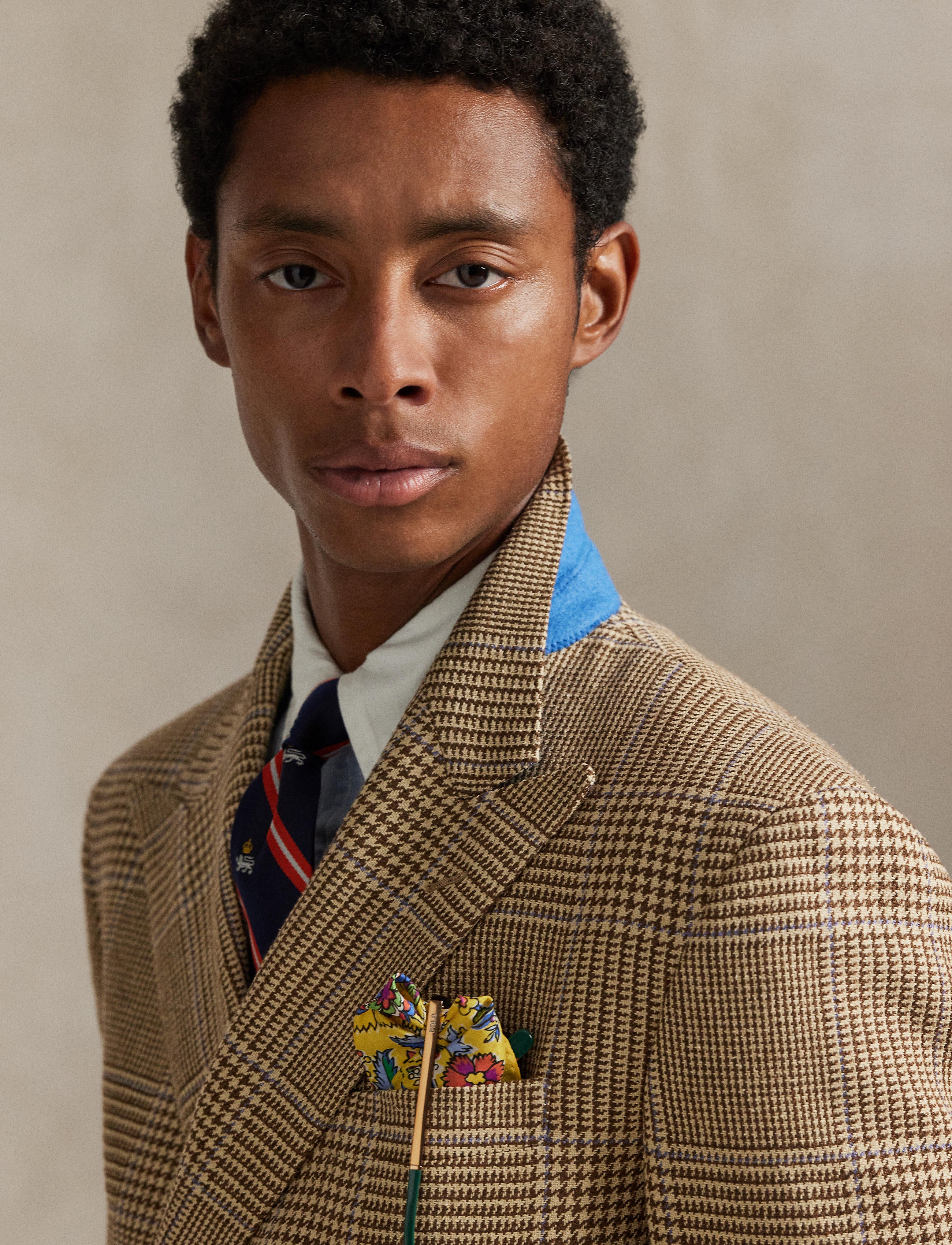 Our Polo jacket offers more structure in the chest and shoulders along with full lining. This double-breasted version is expertly tailored from a custom-developed Italian fabric that includes two types of silk—mulberry and tussah. Its timeless Glen plaid pattern is punctuated by a lavender overcheck for a sophisticated, heritage-inspired look.