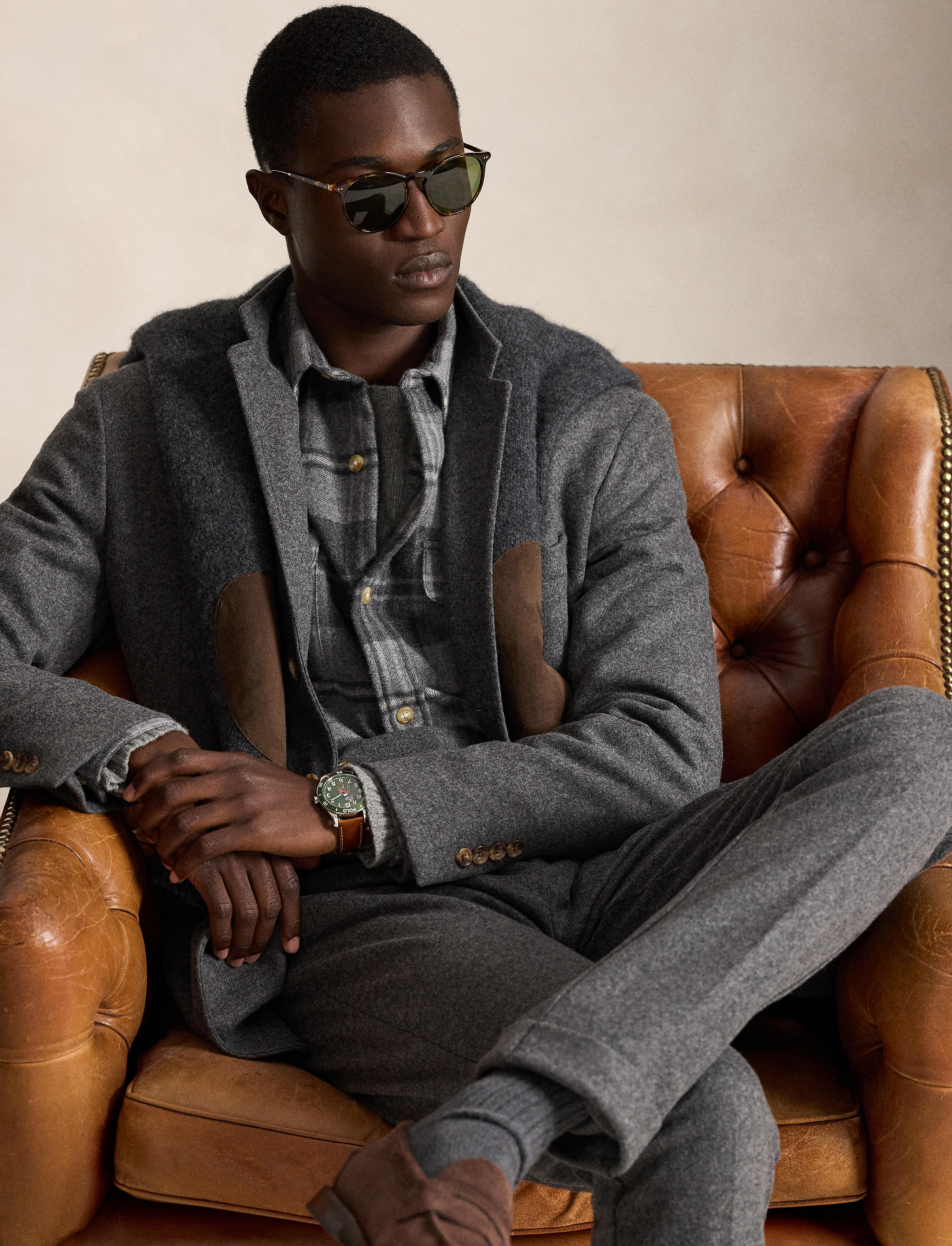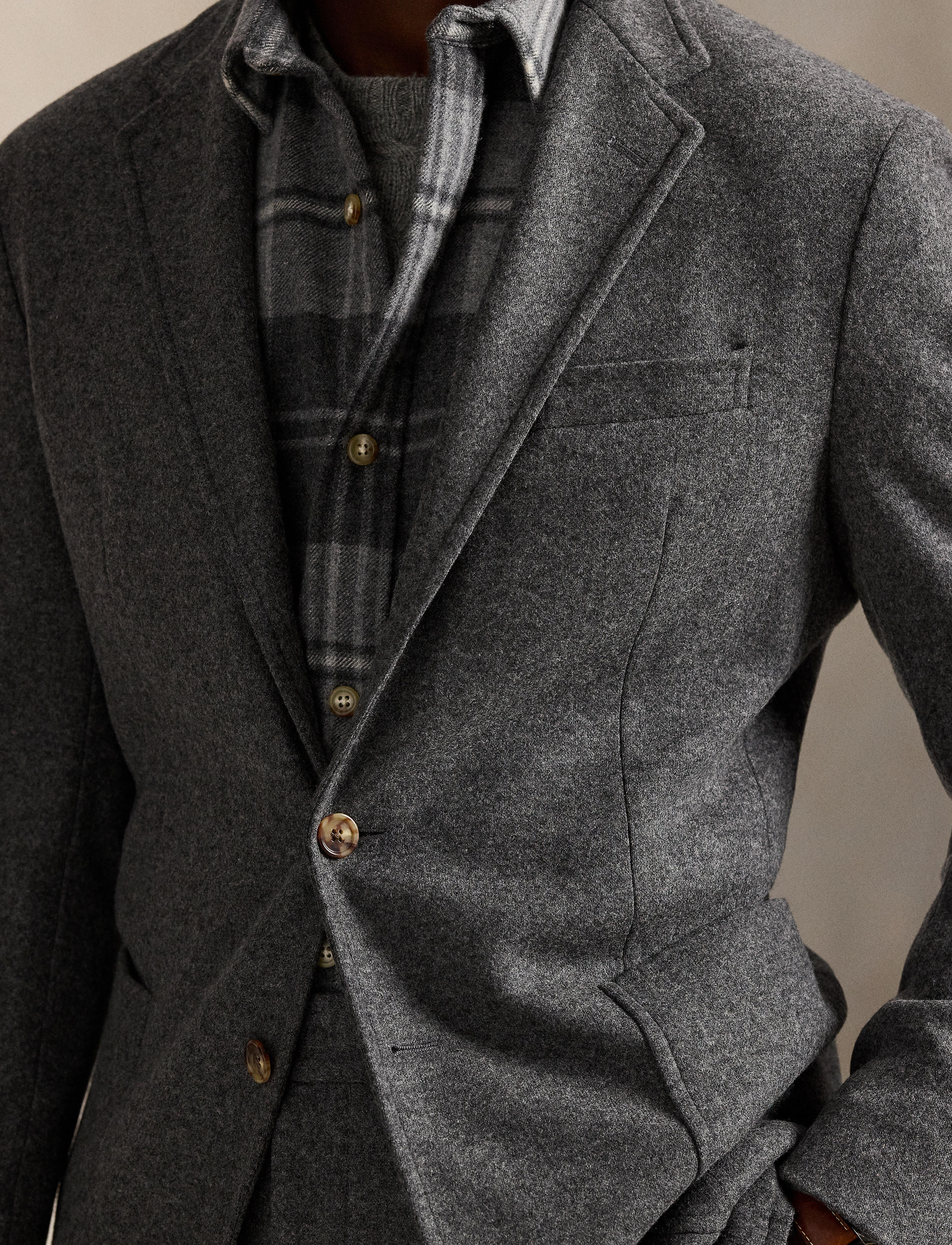 Our Polo Soft jacket puts a modern spin on classic preppy style with a natural shoulder, slightly structured chest, and partial lining. This wool-blend version is expertly tailored from a knit interpretation of woven flannel. The custom-developed Italian cloth includes a touch of stretch for a comfortable fit.