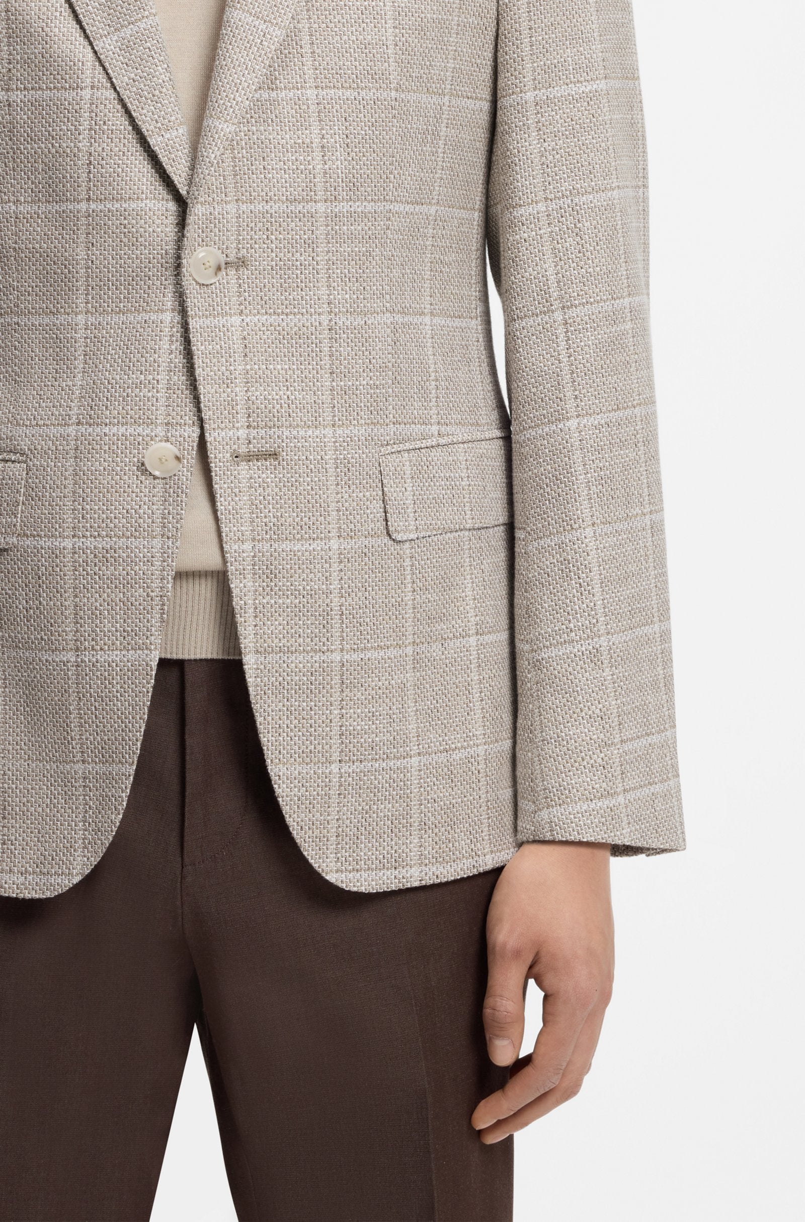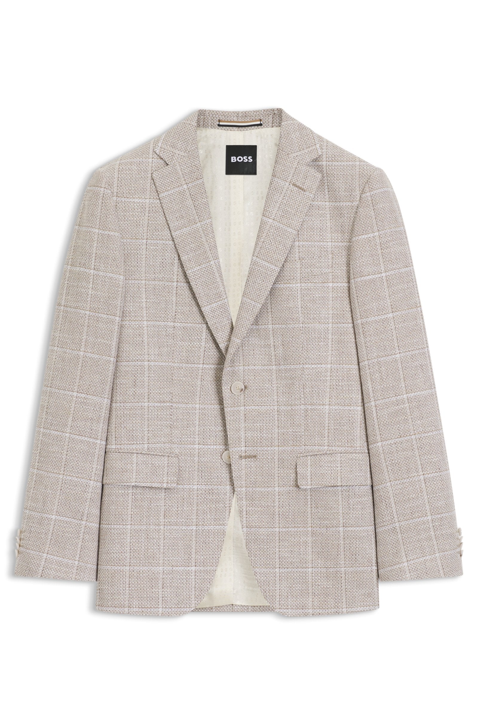 With its clean cut and classic check, this BOSS Menswear blazer will become a formal favorite. Crafted in cotton with linen and stretch.