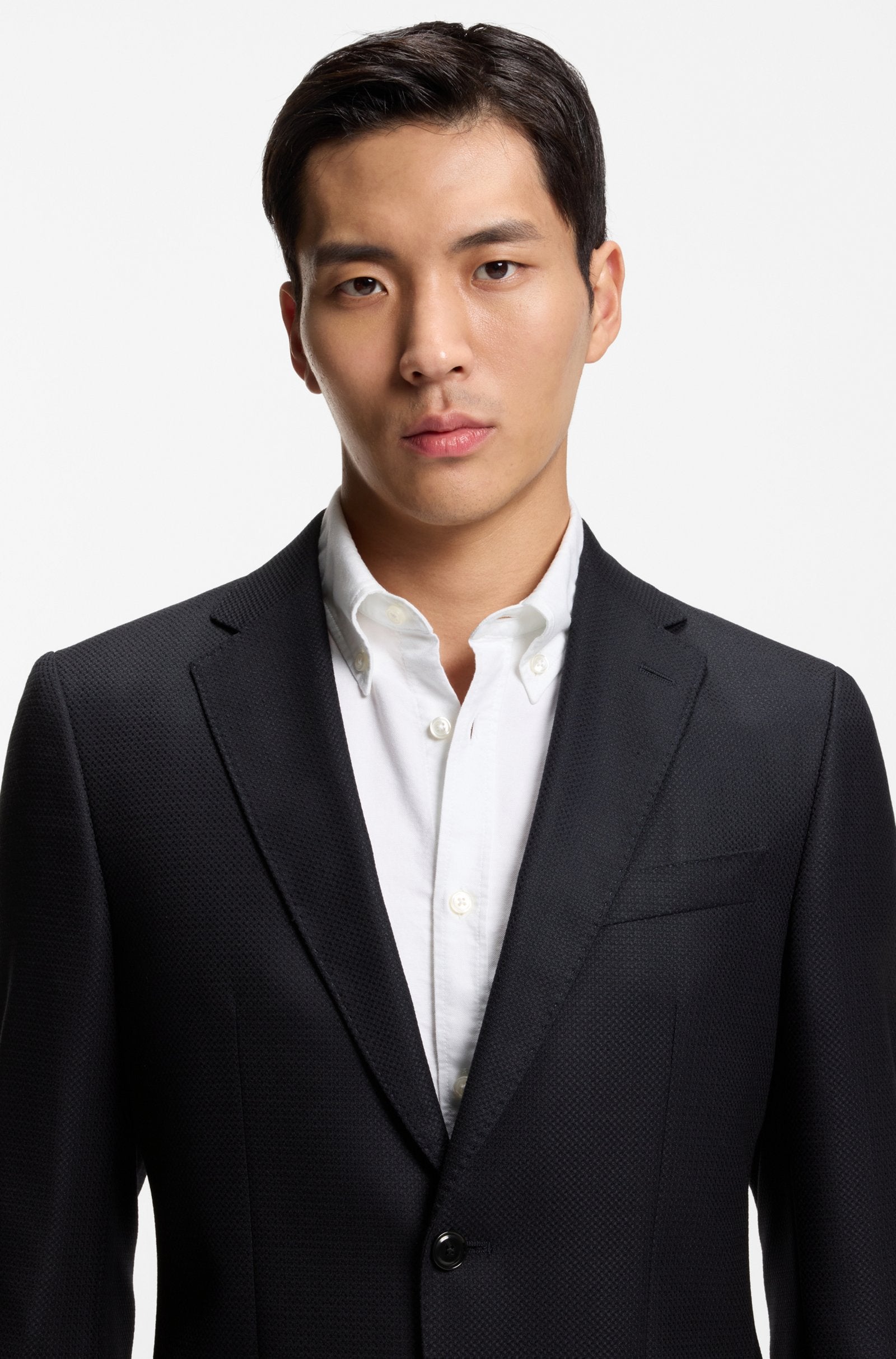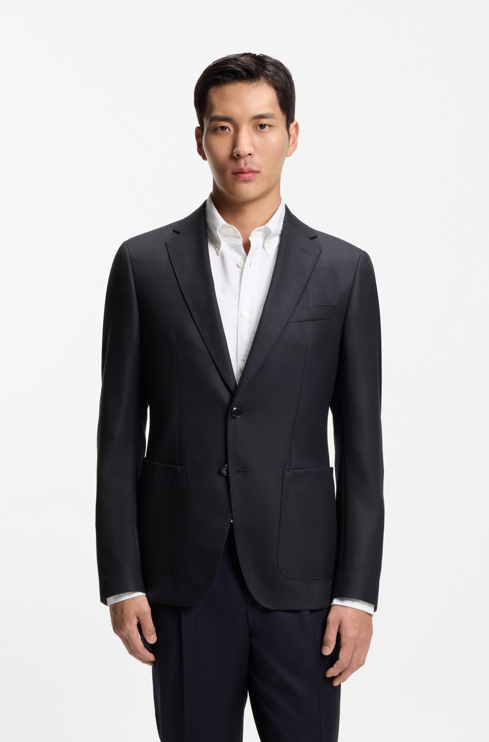Tailored to a timeless straight fit, this BOSS Menswear blazer has a subtle pattern for heritage appeal. Crafted in virgin wool with natural stretch.