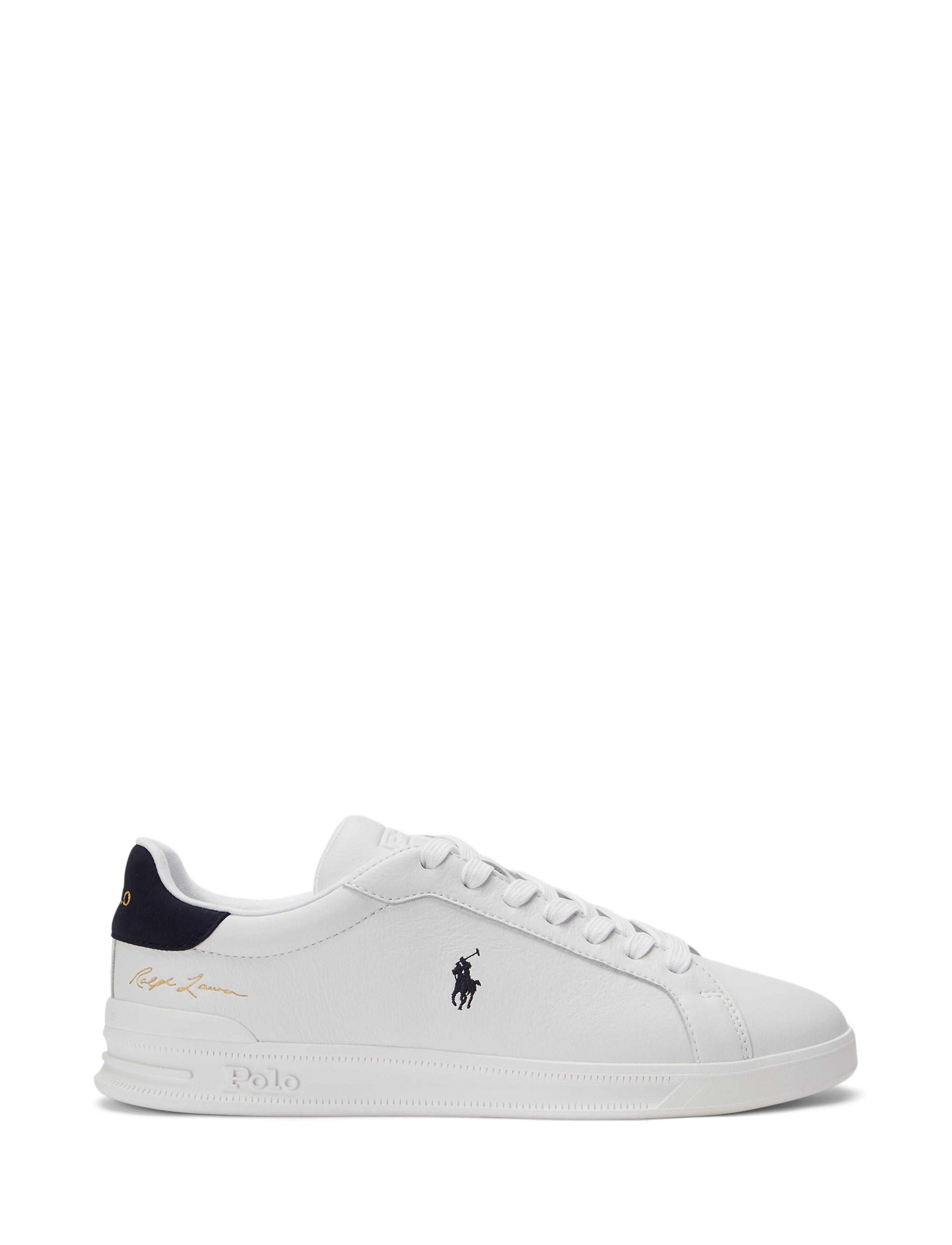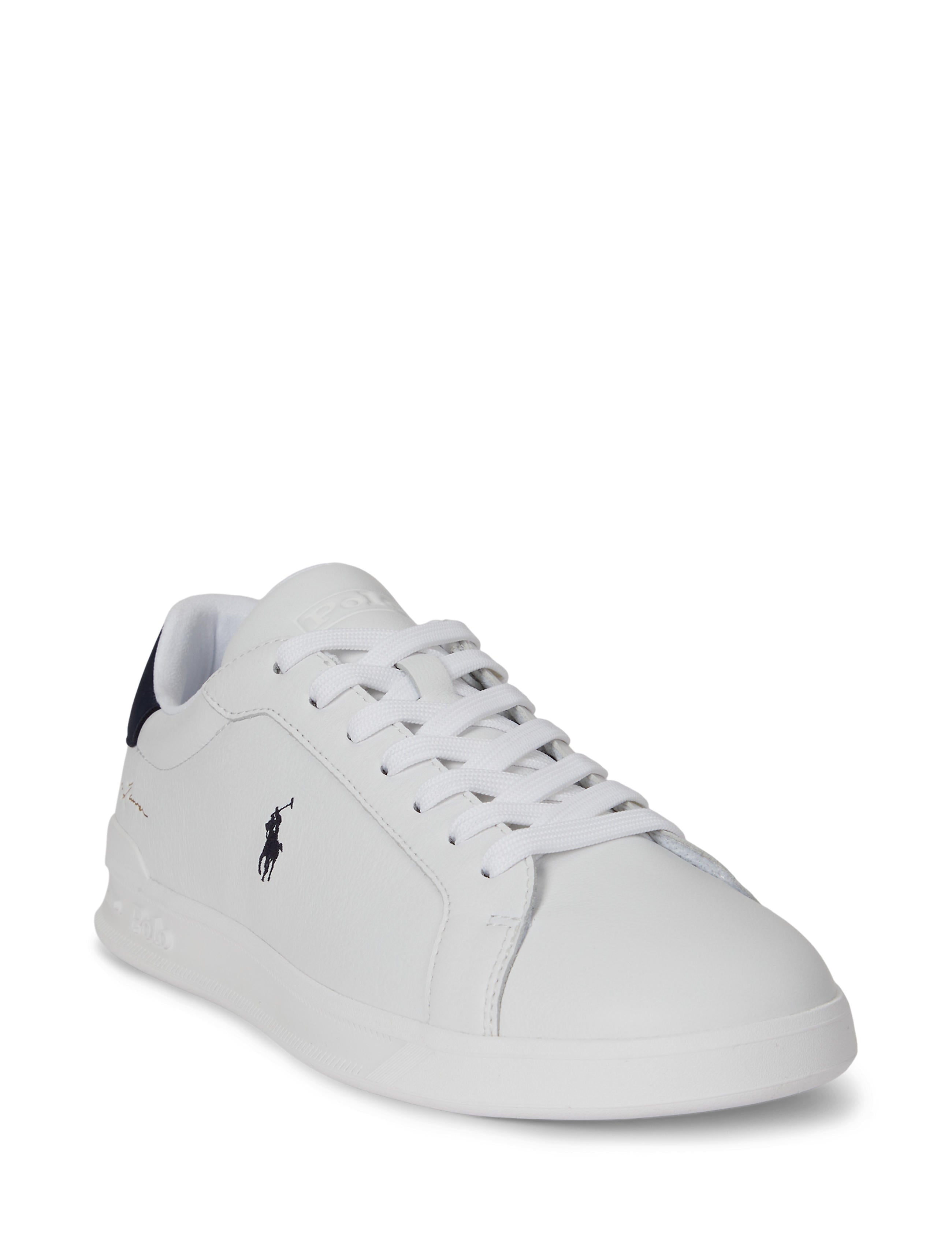 Inspired by shoes worn by early tennis professionals, the Heritage Court II features a dual-compound EVA midsole and a rubber cupsole construction with integrated heel support. This tumbled leather version unites embossed logo accents with Ralph Lauren’s signature embroidered Pony.