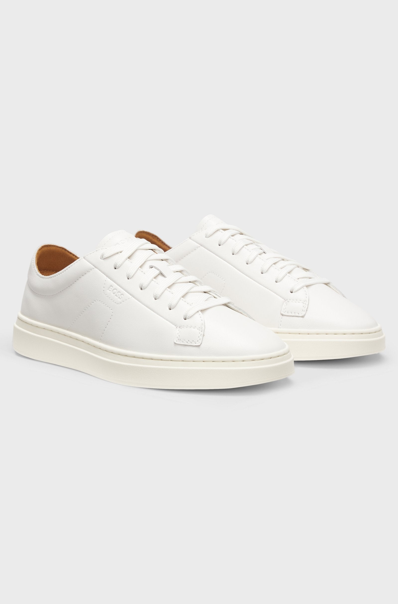 With their cushioning insole and smooth leather uppers, these BOSS Menswear trainers are an everyday essential. Durable rubber outsole. Subtle embossed logos. This product contains at least 80% better raw materials. The leather used to make this product has been sourced from certified tanneries.