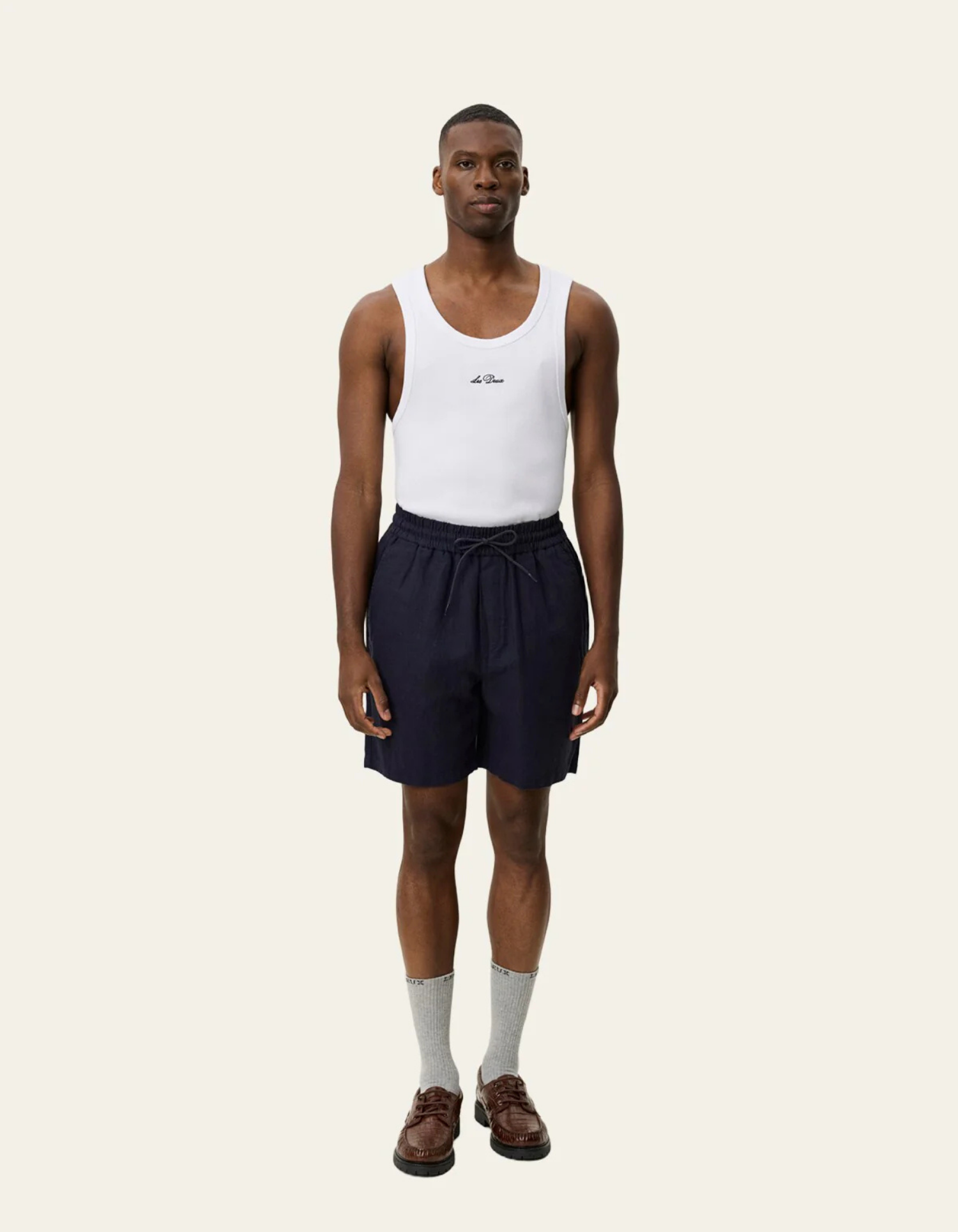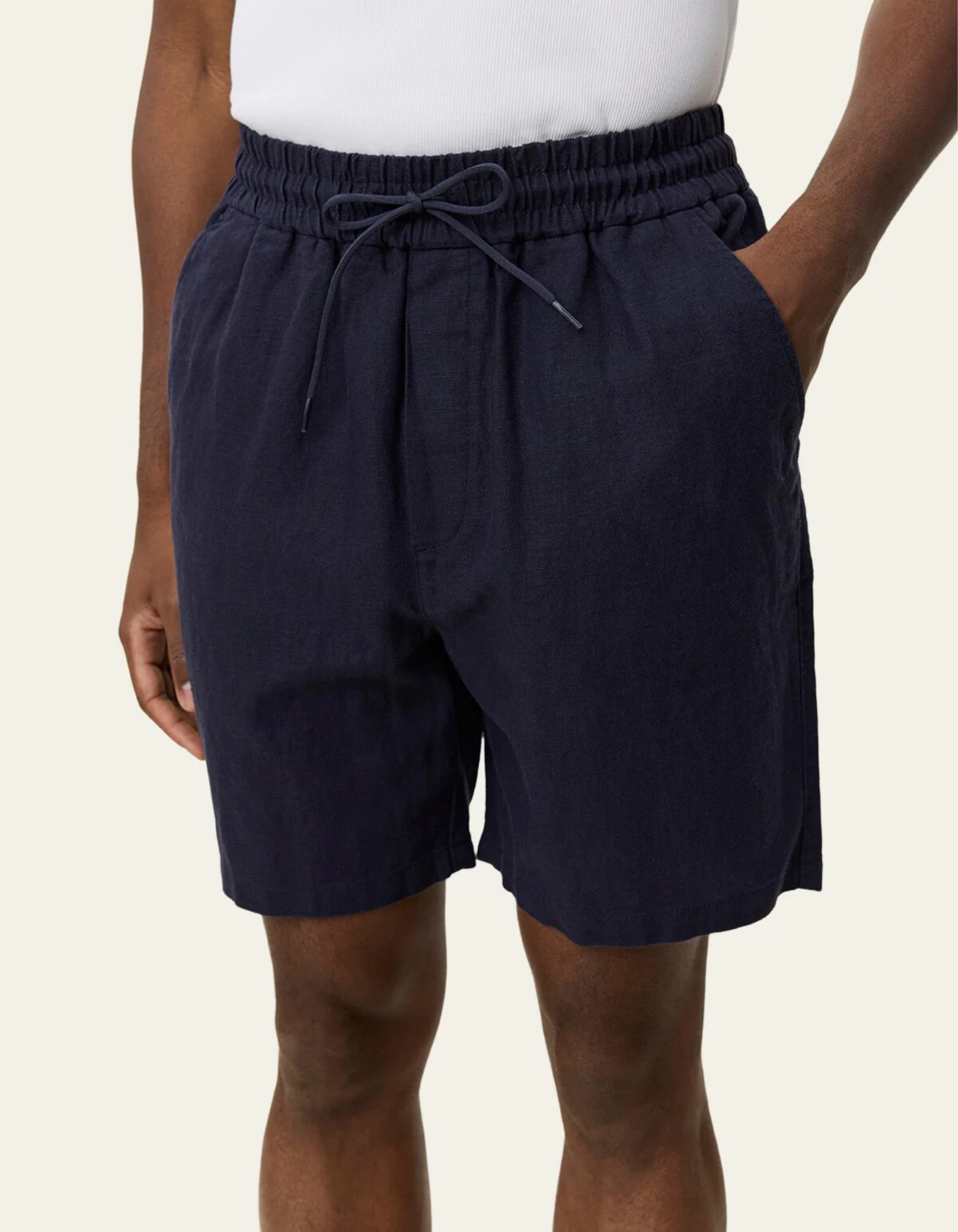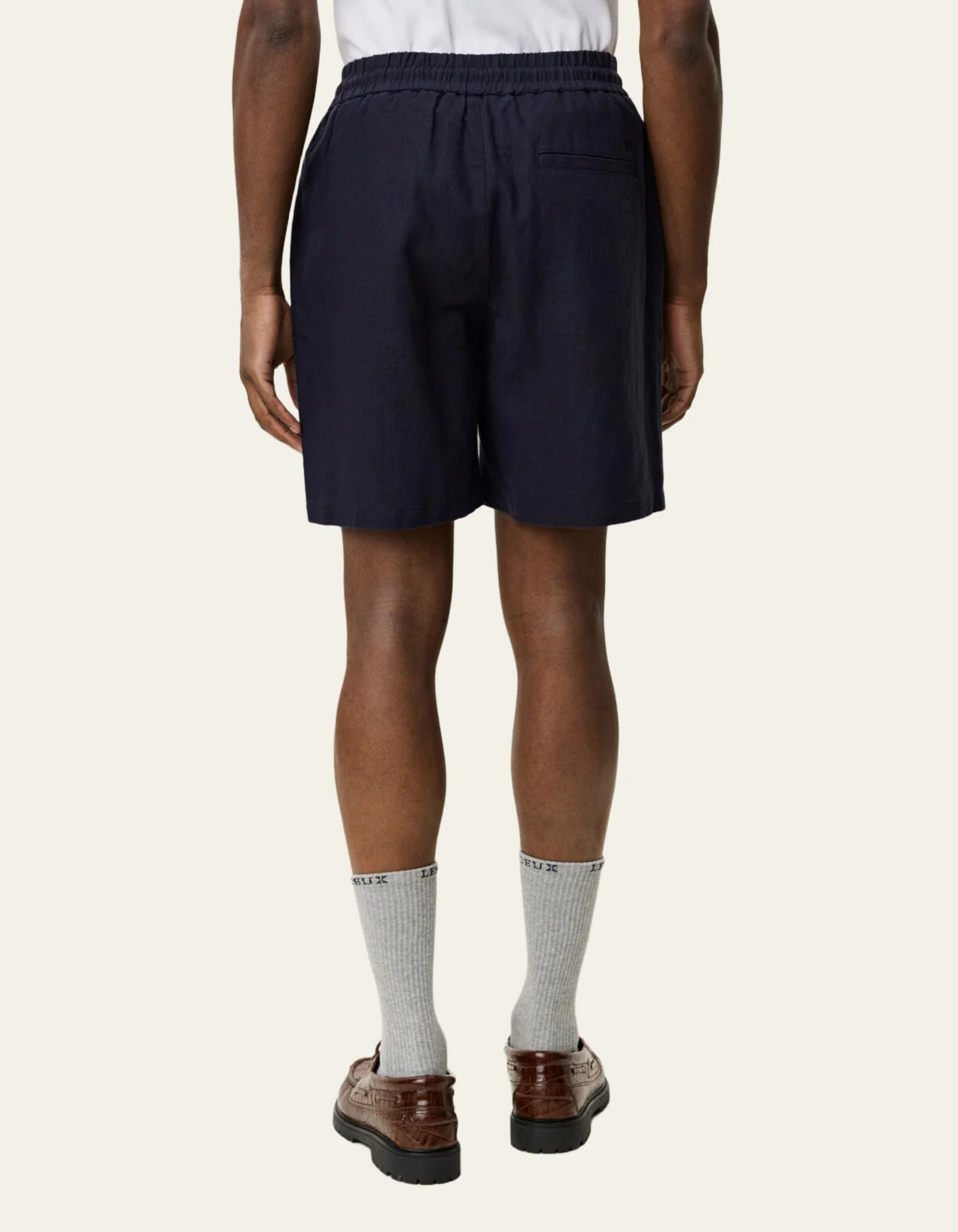 Crisp lightweight shorts in a breathable linen blend. Designed with an elastic drawstring waist and side pockets for an easy relaxed feel.