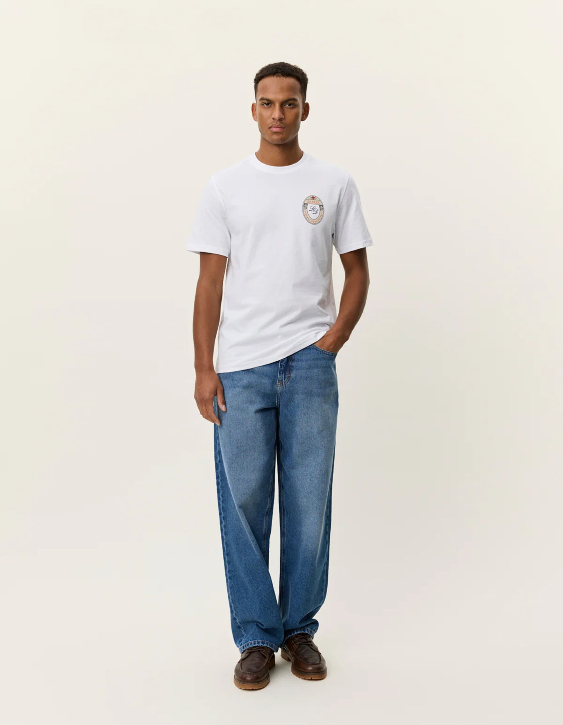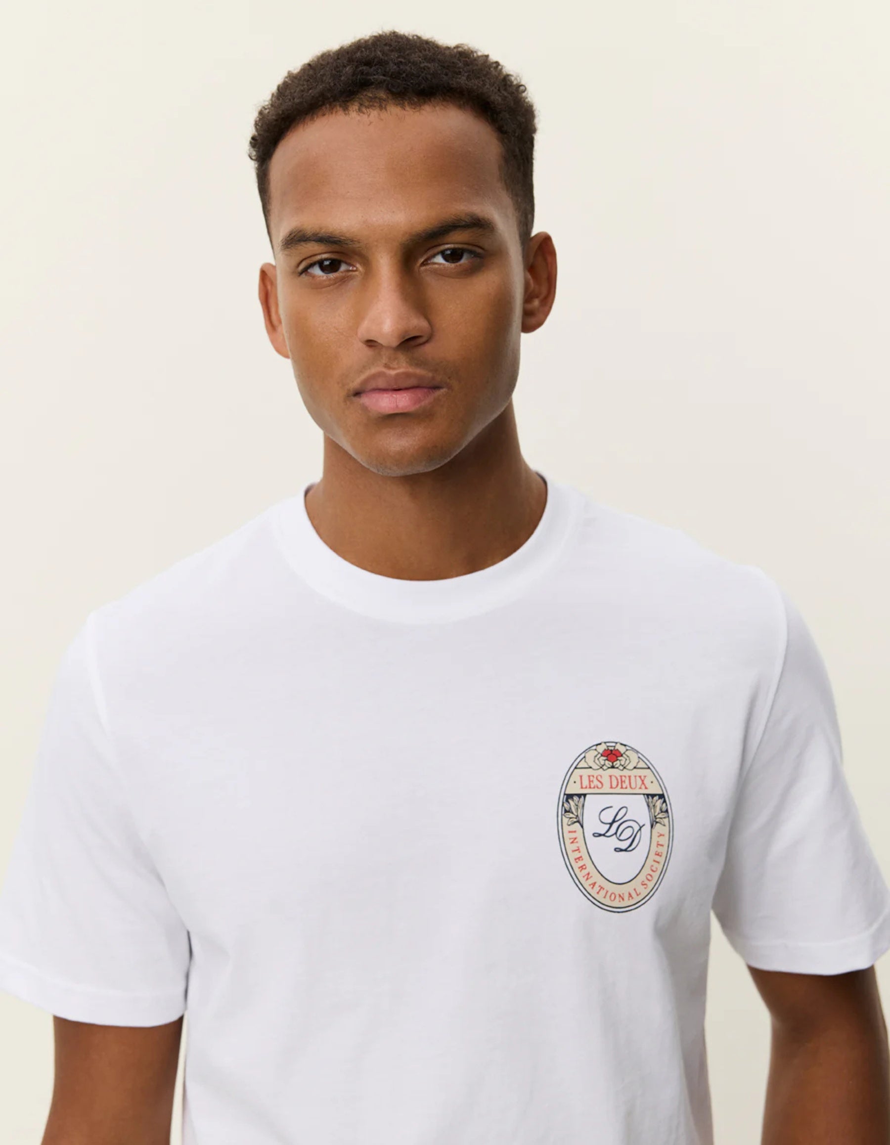A simple graphic tee crafted in soft organic cotton. Finished with a small flower emblem print at the chest for a refined seasonal touch.