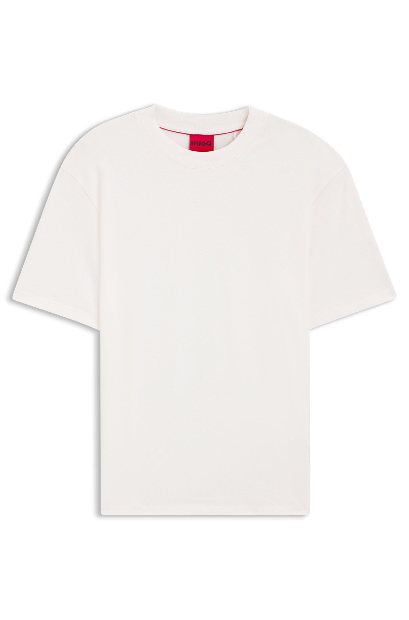A signature T-shirt by HUGO, featuring a logo print at the chest. This relaxed-fit top is crafted in cotton jersey with a weighty feel.