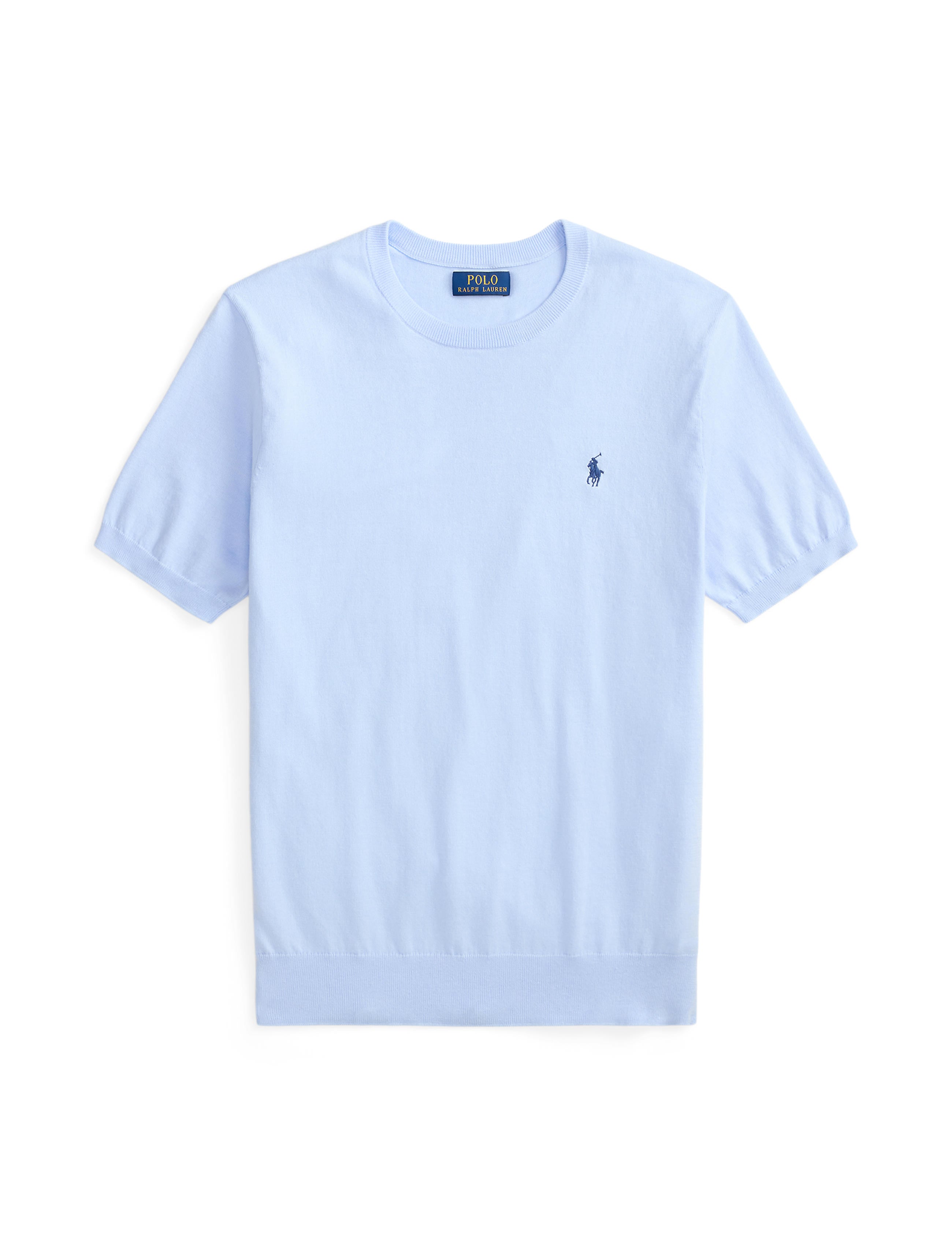 - Crewneck. Short sleeves with rib-knit armbands.