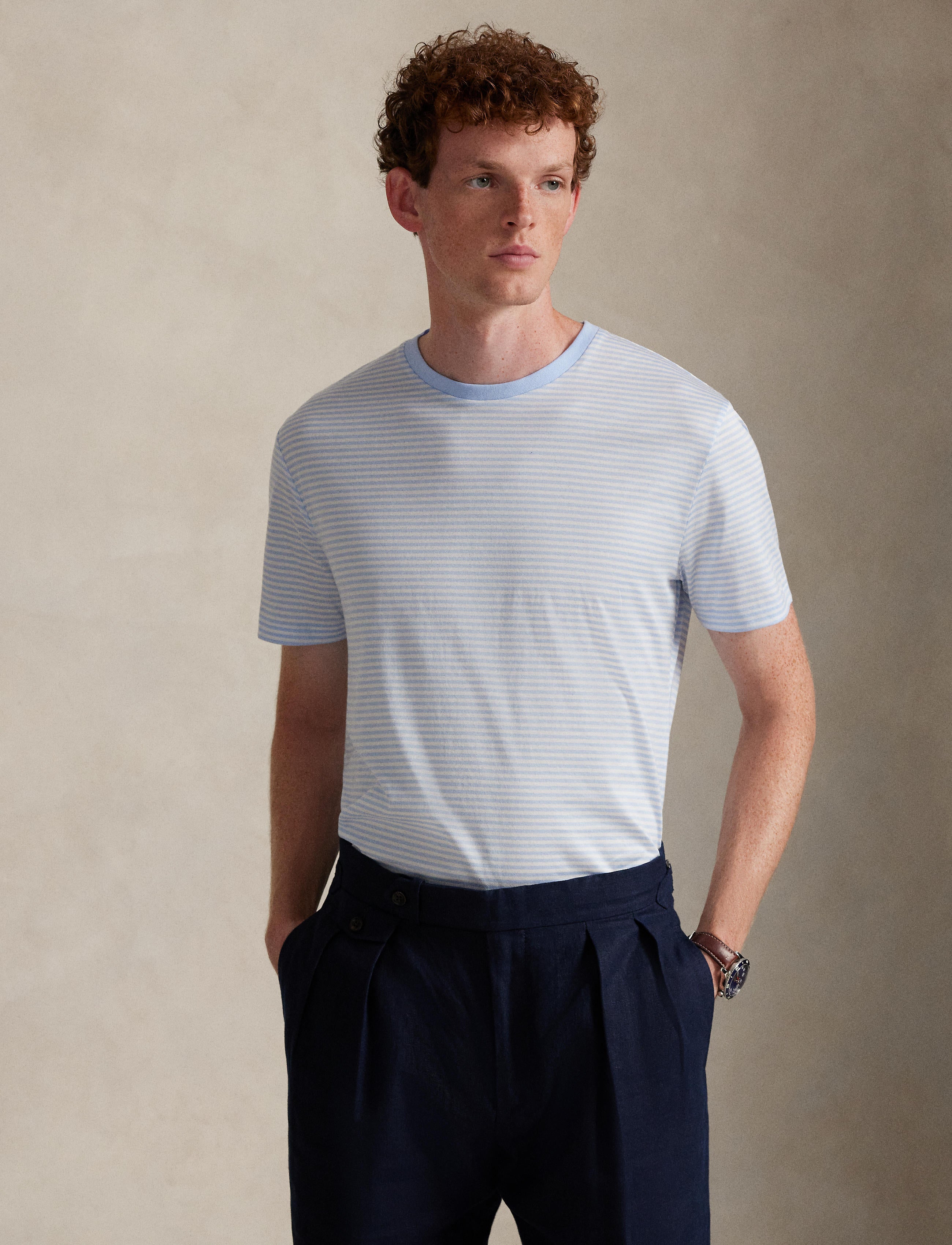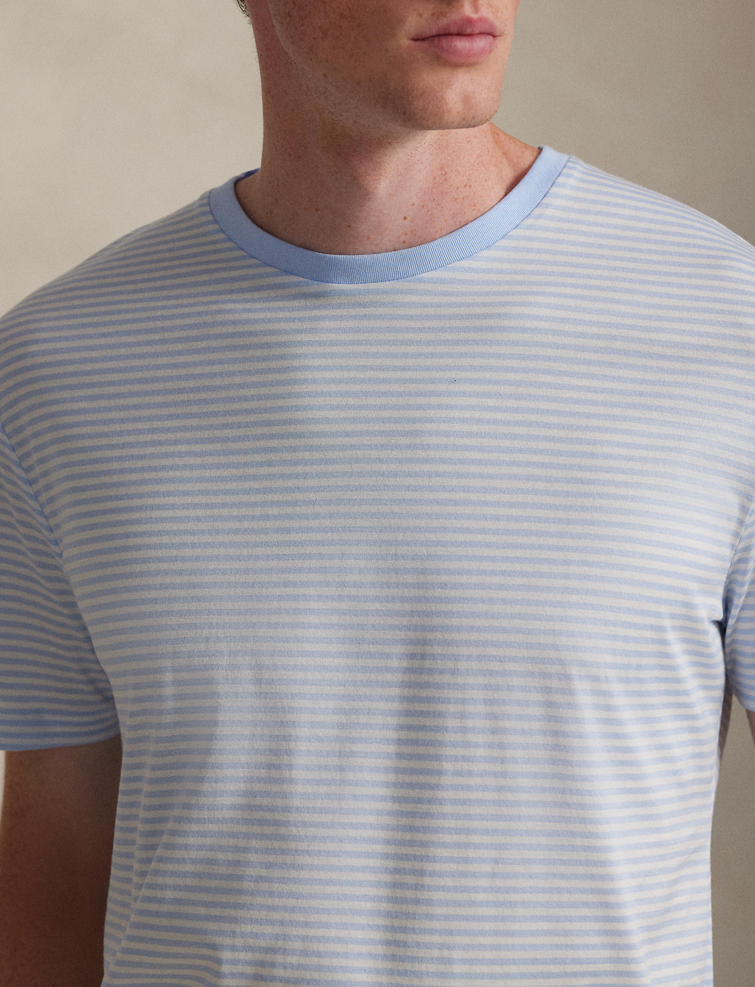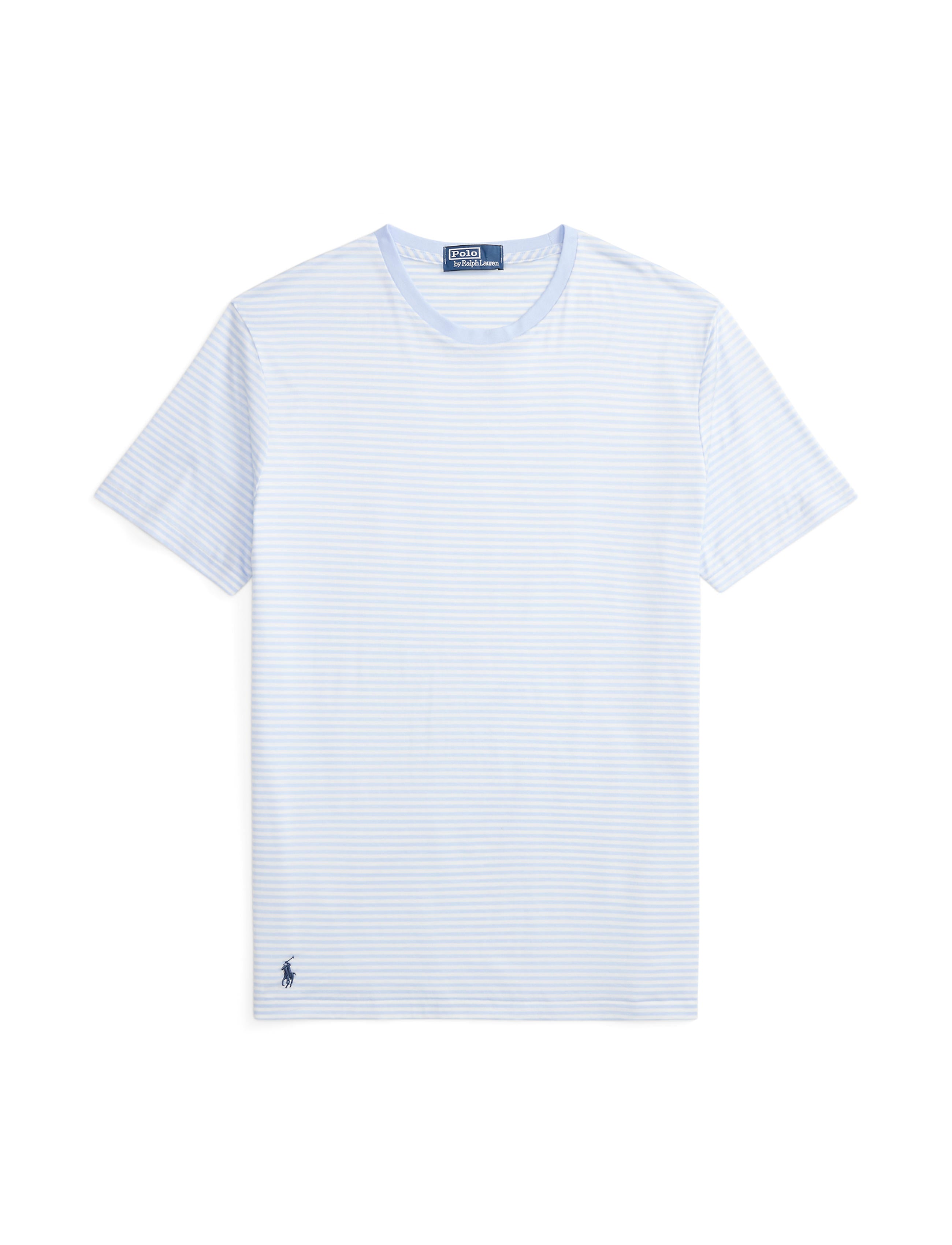 Made with luxurious cotton lisle, this T-shirt is intricately embroidered with a tonal iteration of our Pony to match back to its striped layout.