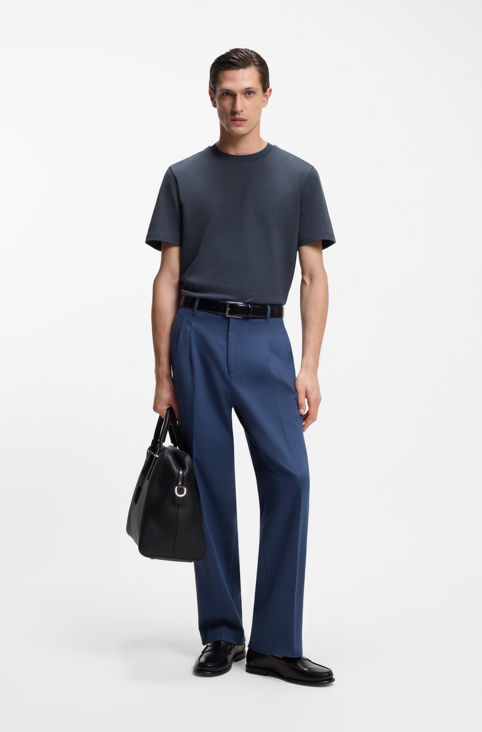 Featuring a micro-bubble structure in a two-tone effect, this BOSS Menswear T-shirt adds interest to casual looks. Easy regular fit. Soft cotton.