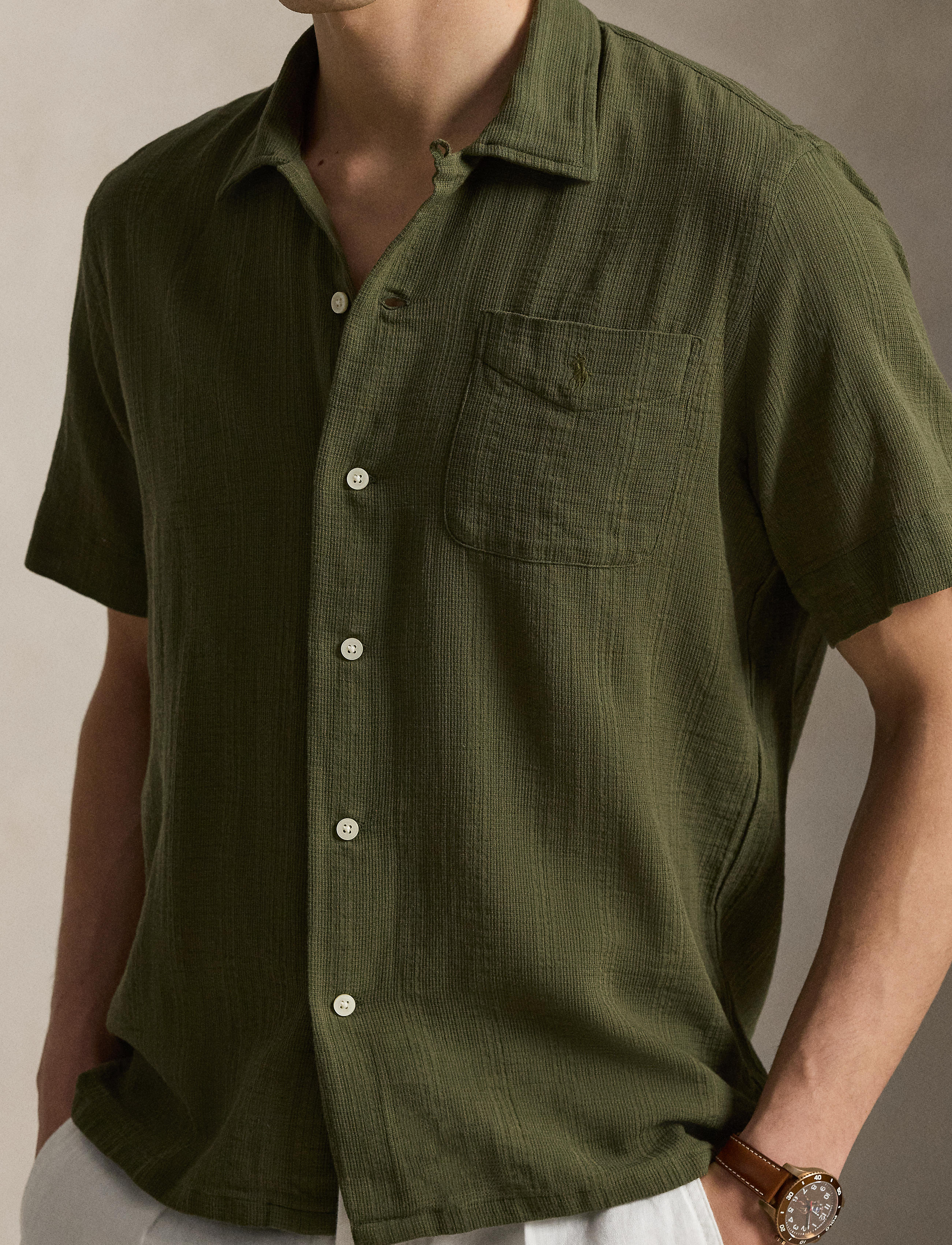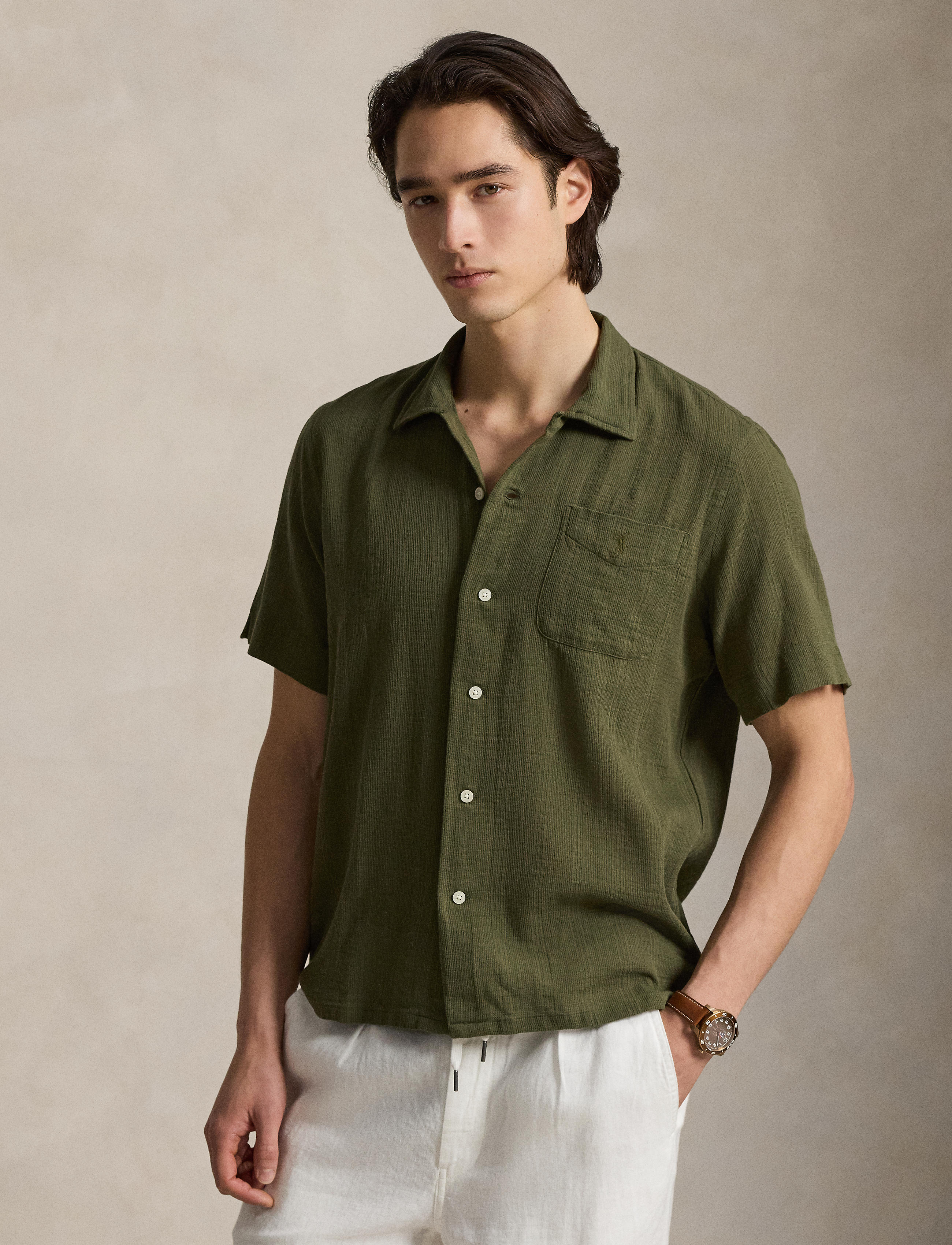 This lightweight camp shirt is crafted with basket-woven cotton for subtle texture. At the left chest, it is intricately embroidered with our signature Pony.