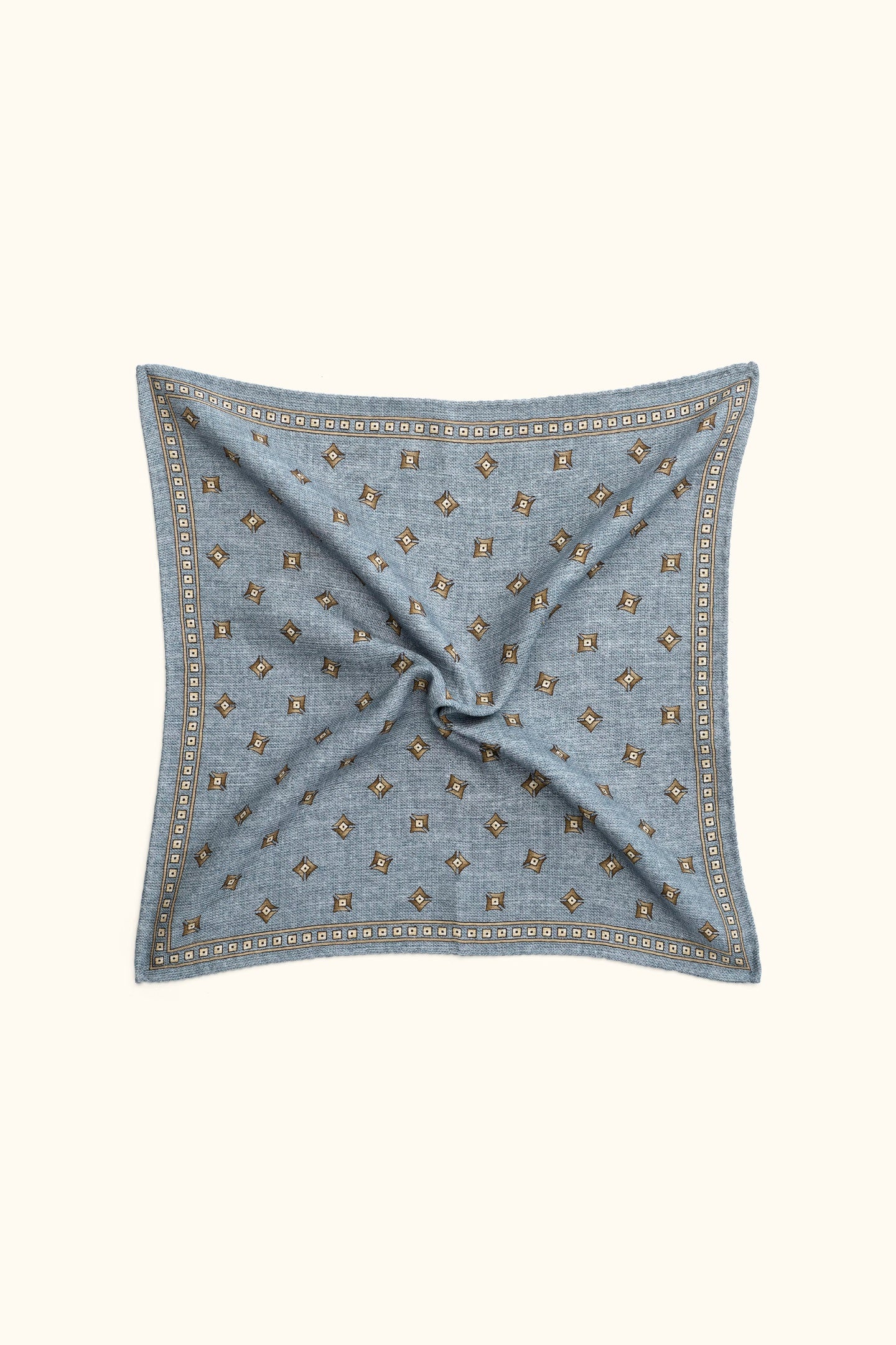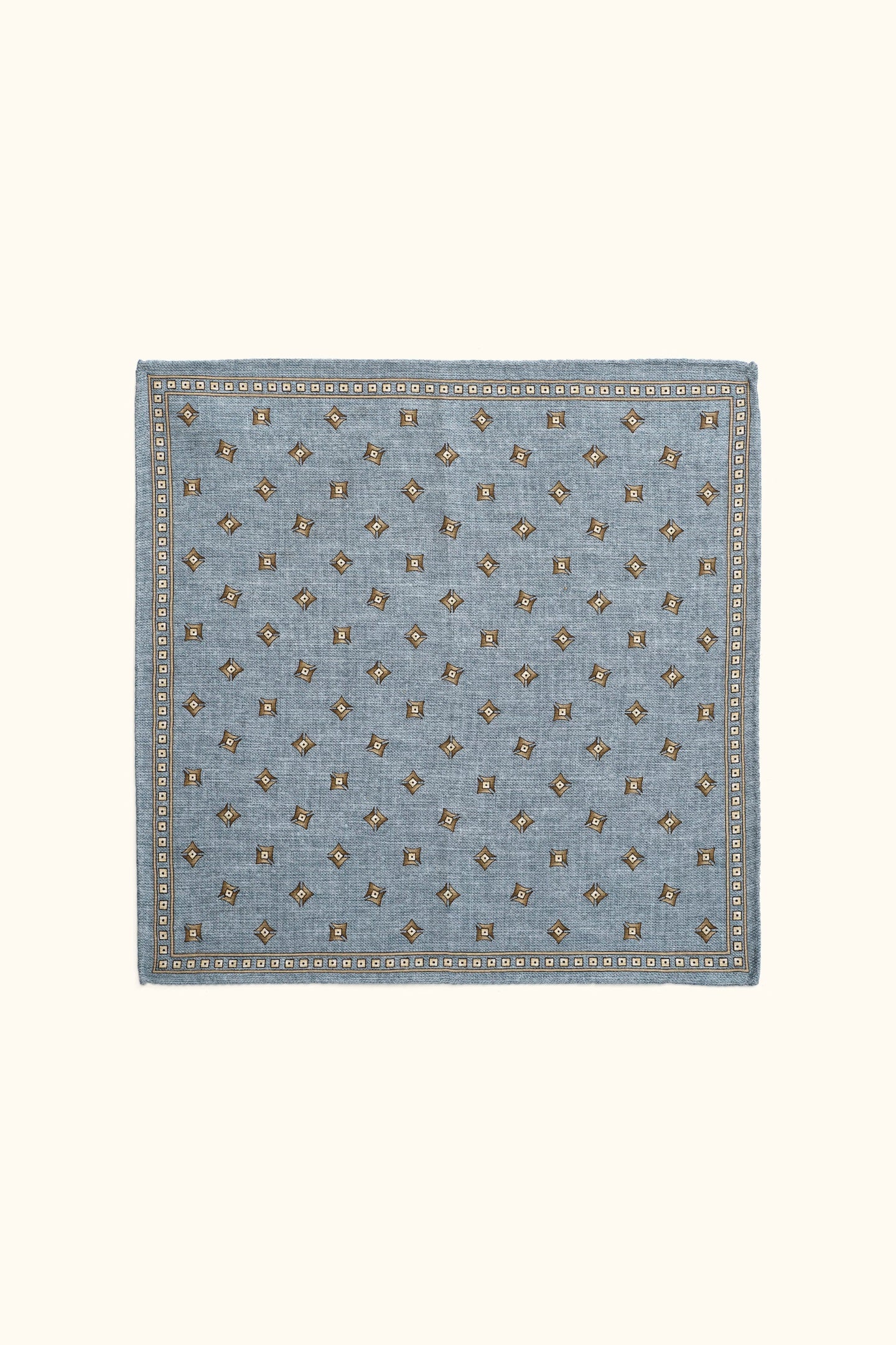A double-sided handkerchief in 100% silk, printed with two harmonizing patterns for increased variety. The fine surface of the silk gives an elegant shine and makes the accessory easy to shape in the breast pocket.